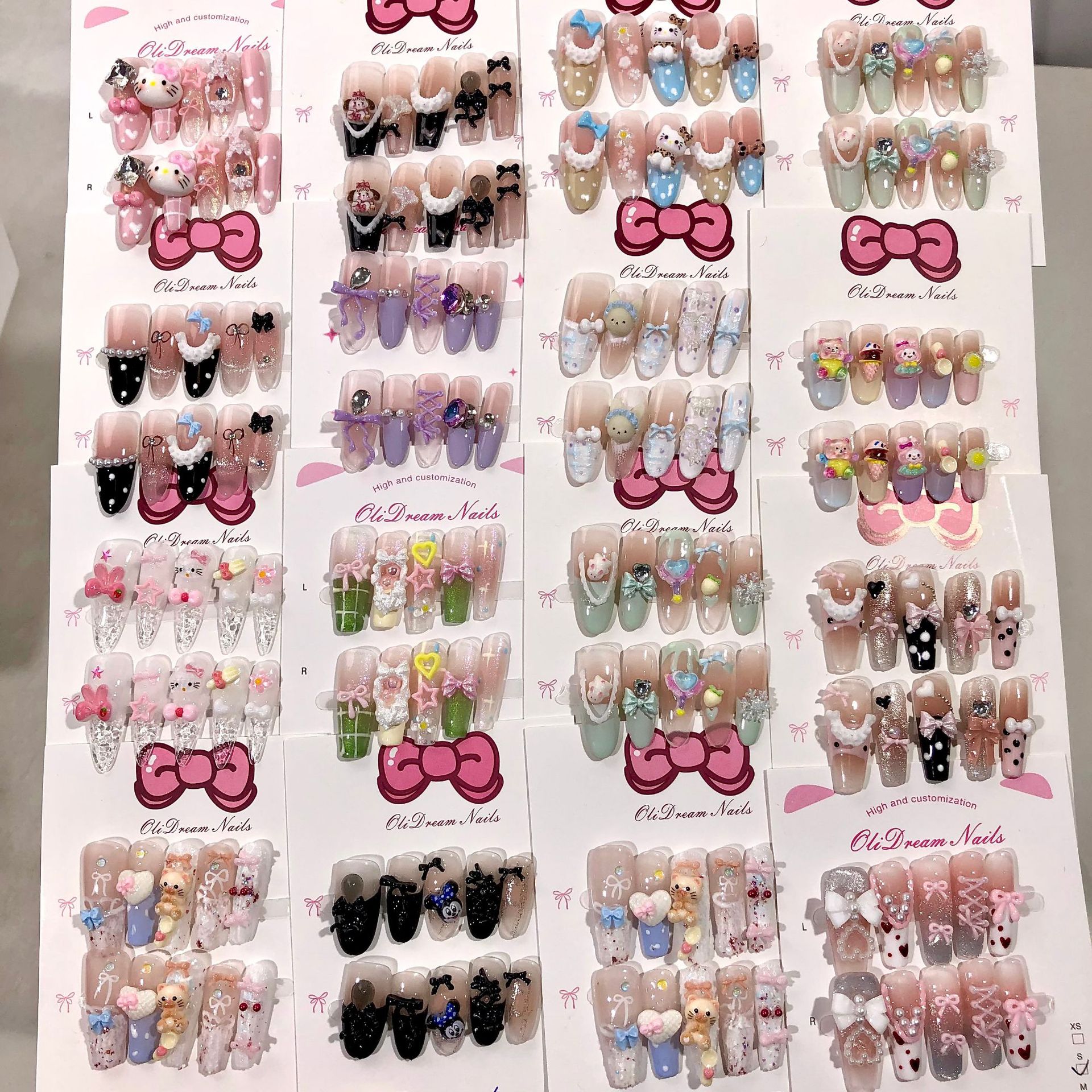 全尺码纯手工穿戴甲短中长直播摆摊批发美甲成品来捡漏