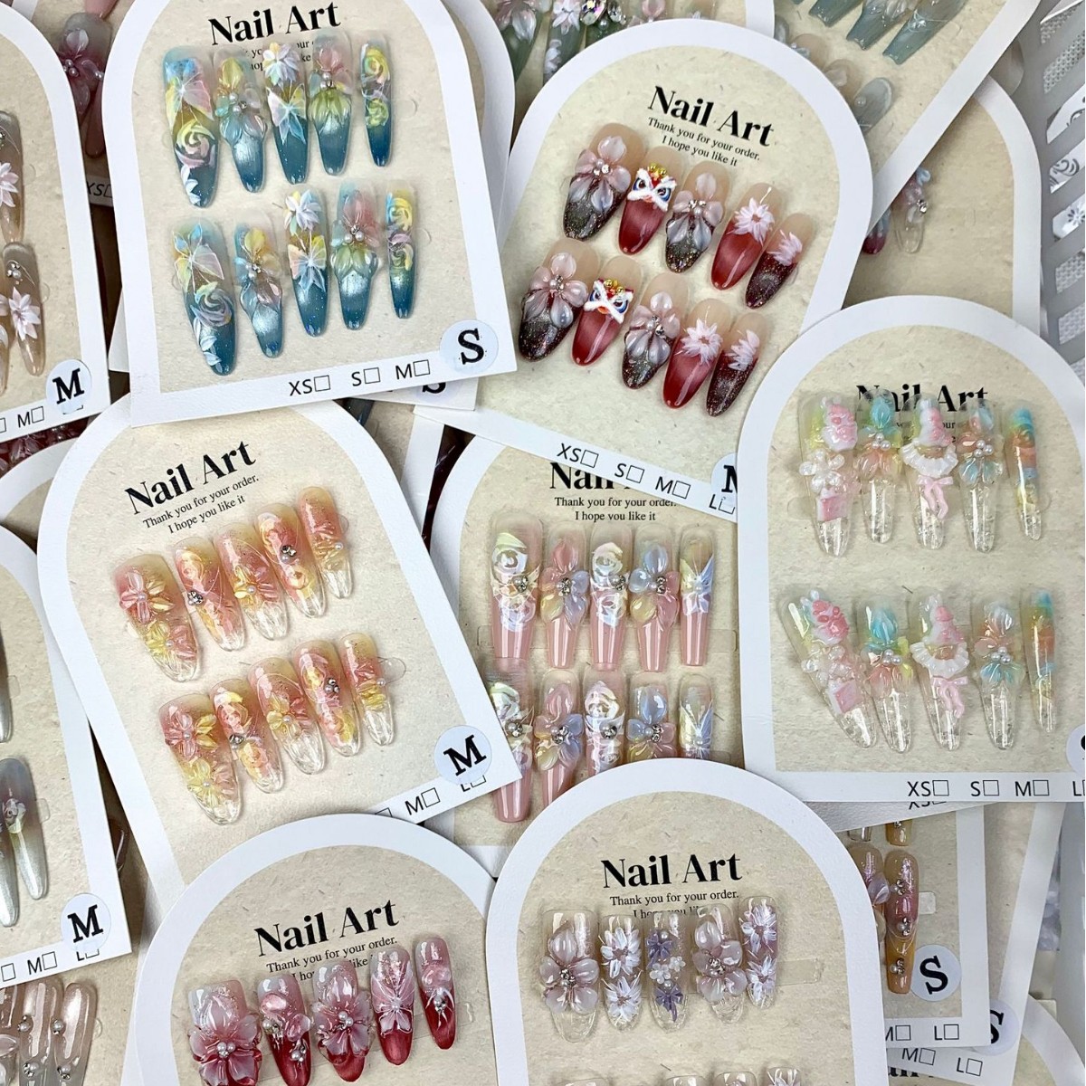 纯手工全尺码穿戴甲立体冰花猫眼摆摊直播盲盒美甲店批发成品贴片
