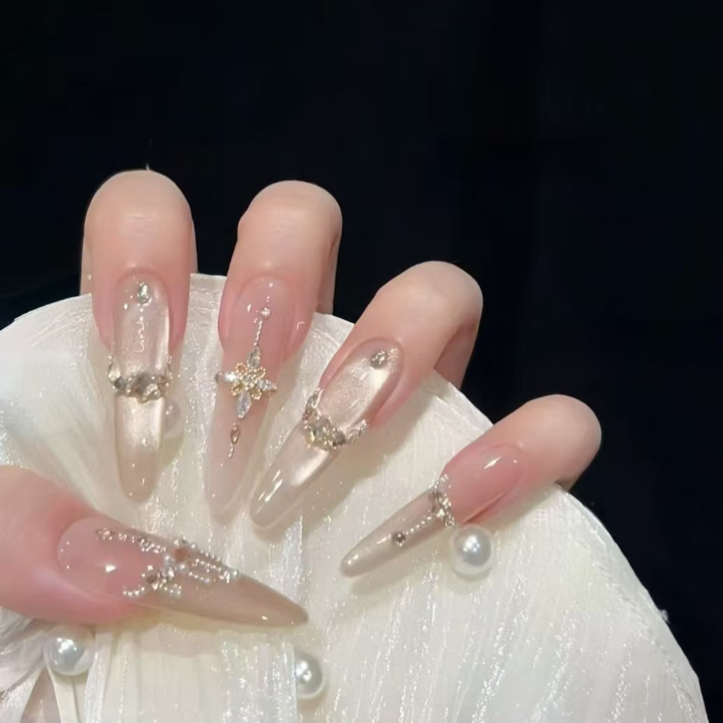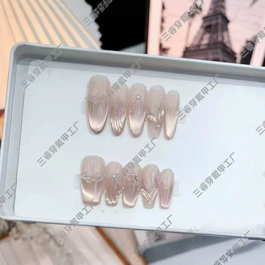 手作りのウェアラブルネイル、ハイエンド、新しいスタイル、クリームスタイル、優しく美白、完成したマニキュア、偽のネイル、卸売