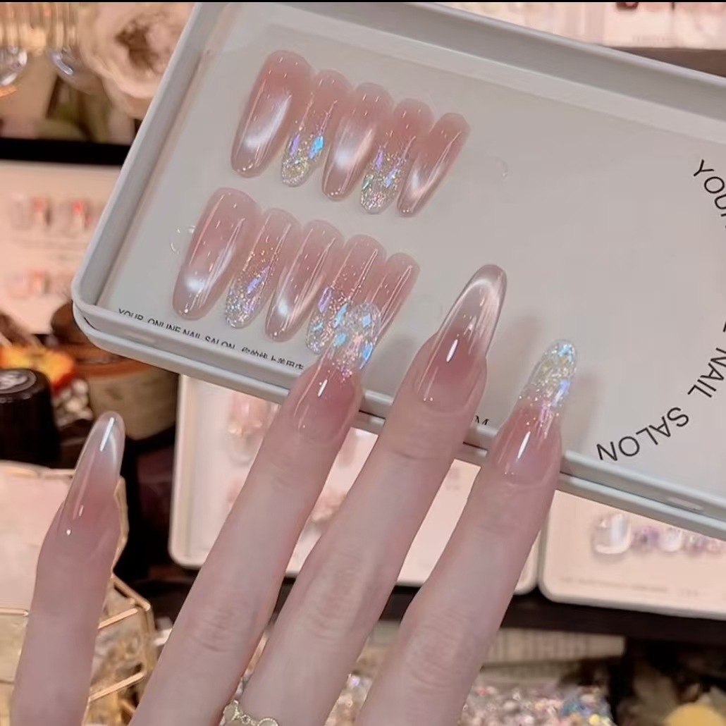 小紅書 超キラキラ手作りネイルチップ マニキュア ネイルアート キャッツアイ ヌードカラー 天池氷河蝶 卸売 光沢