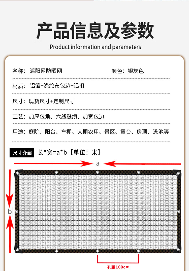 铝箔遮阳网跨境电商隔热抗老化遮阴网户外阳台花卉种植养殖防晒网