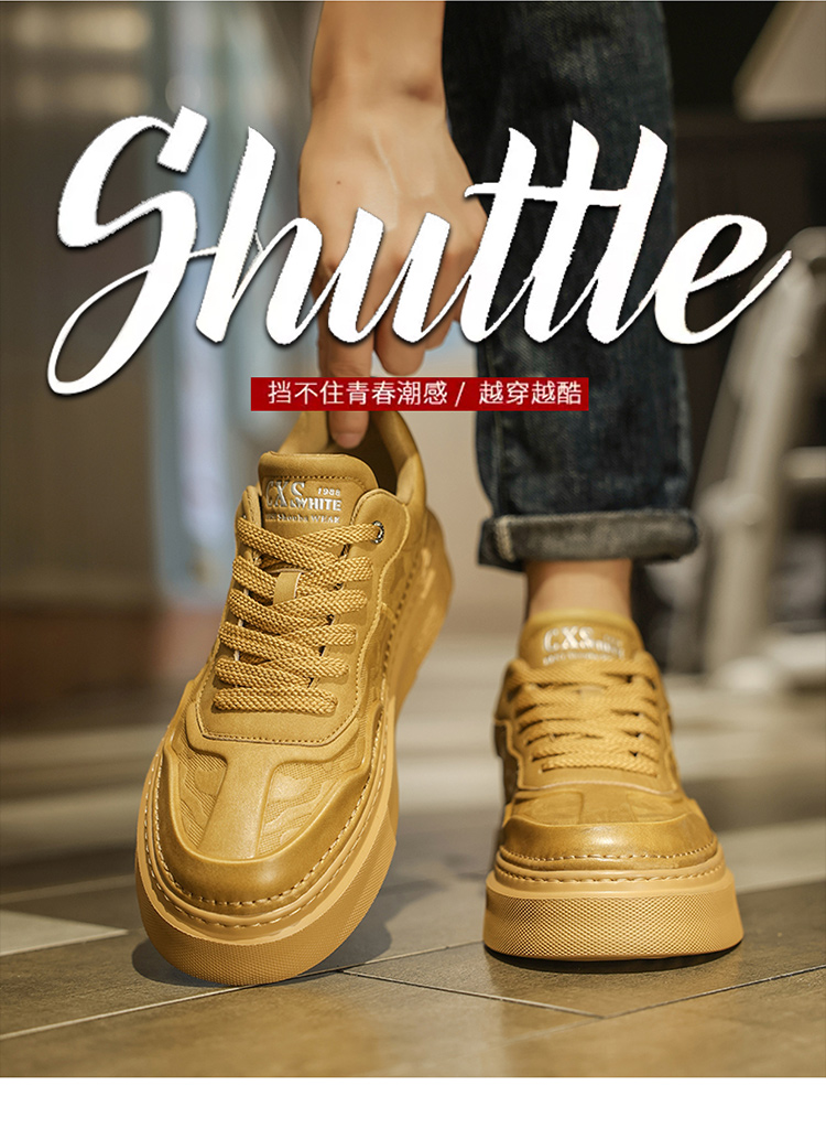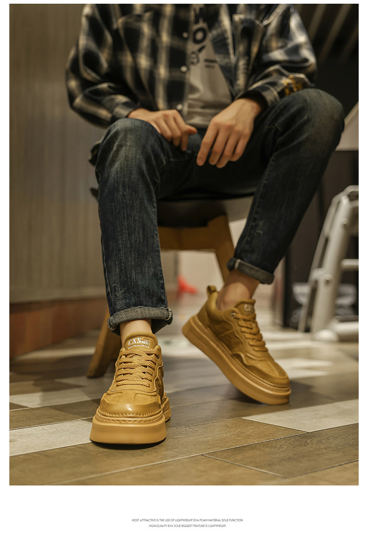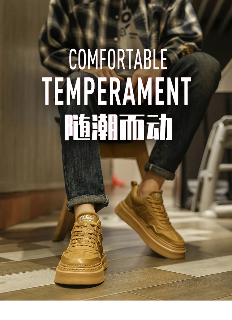 男性靴春の高級感に合わせてカジュアルな板靴を履いています。