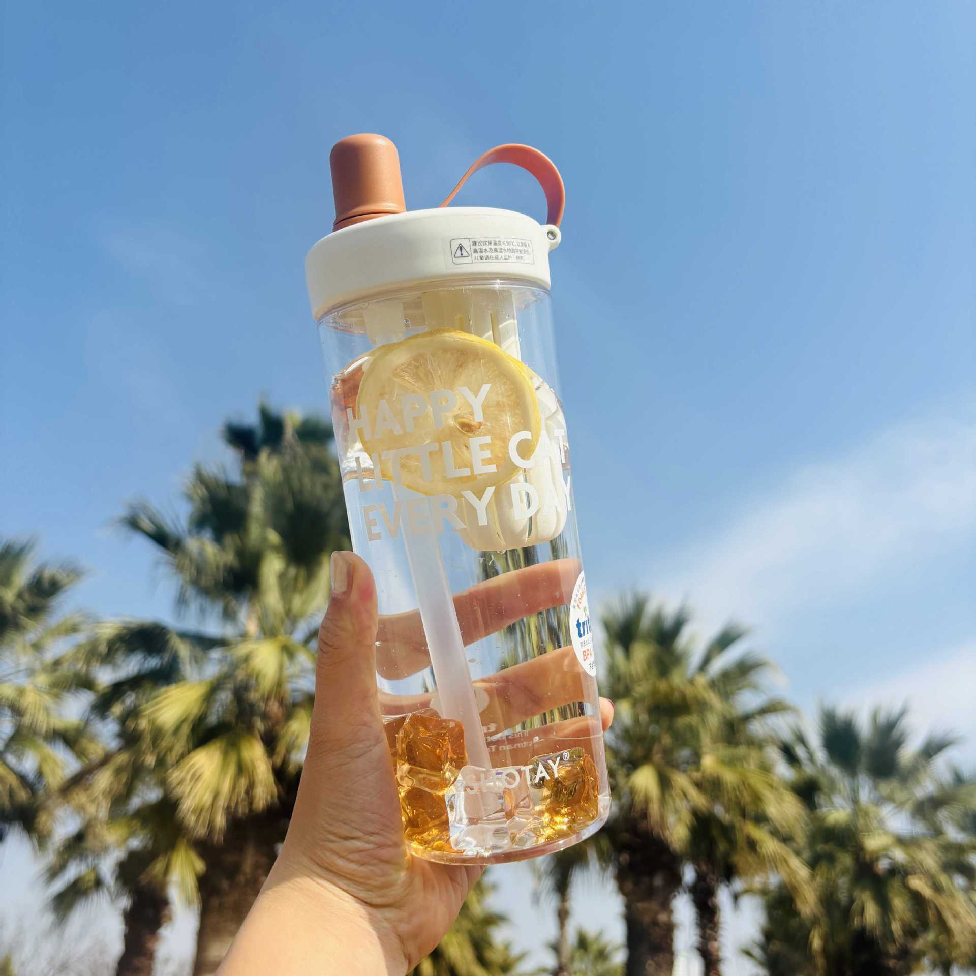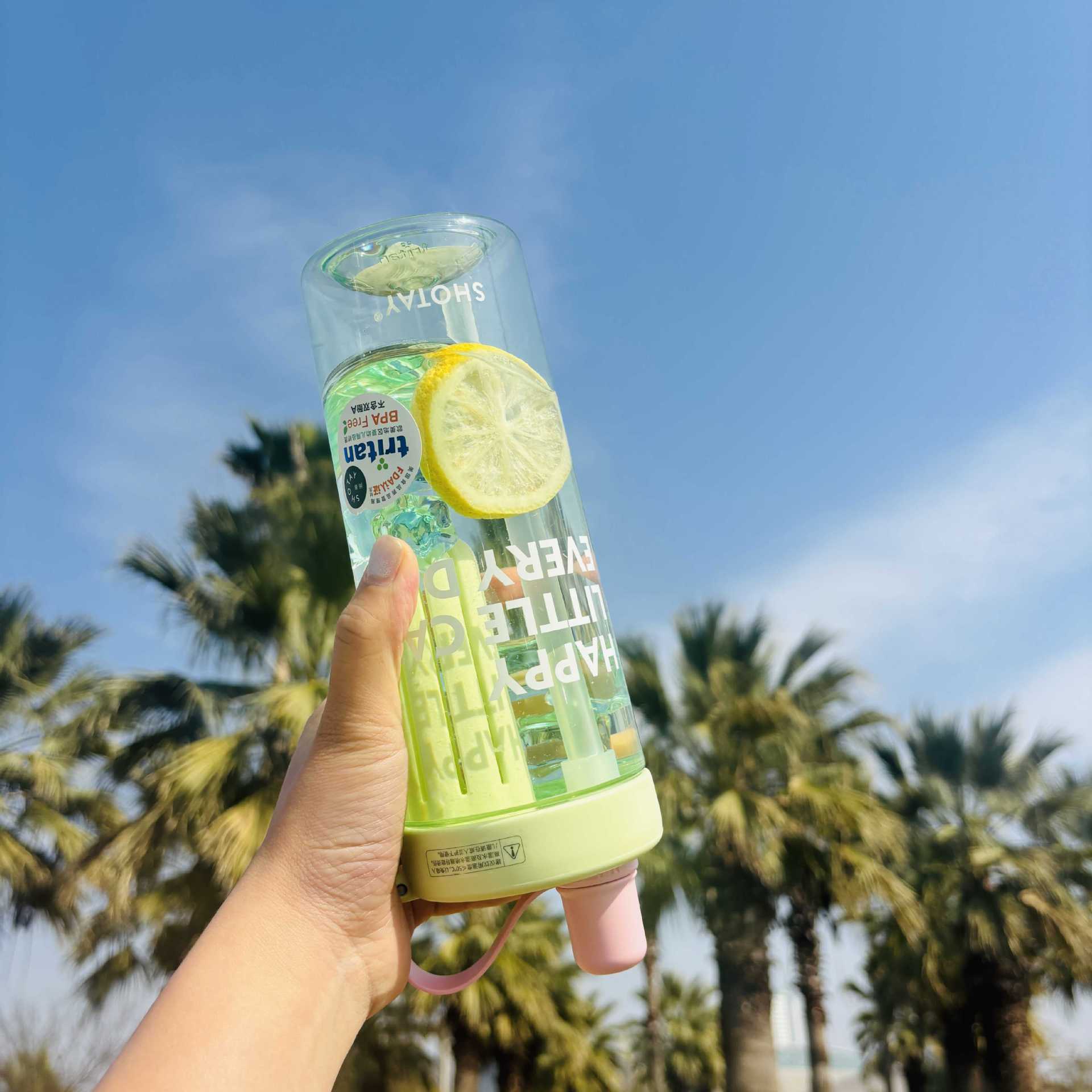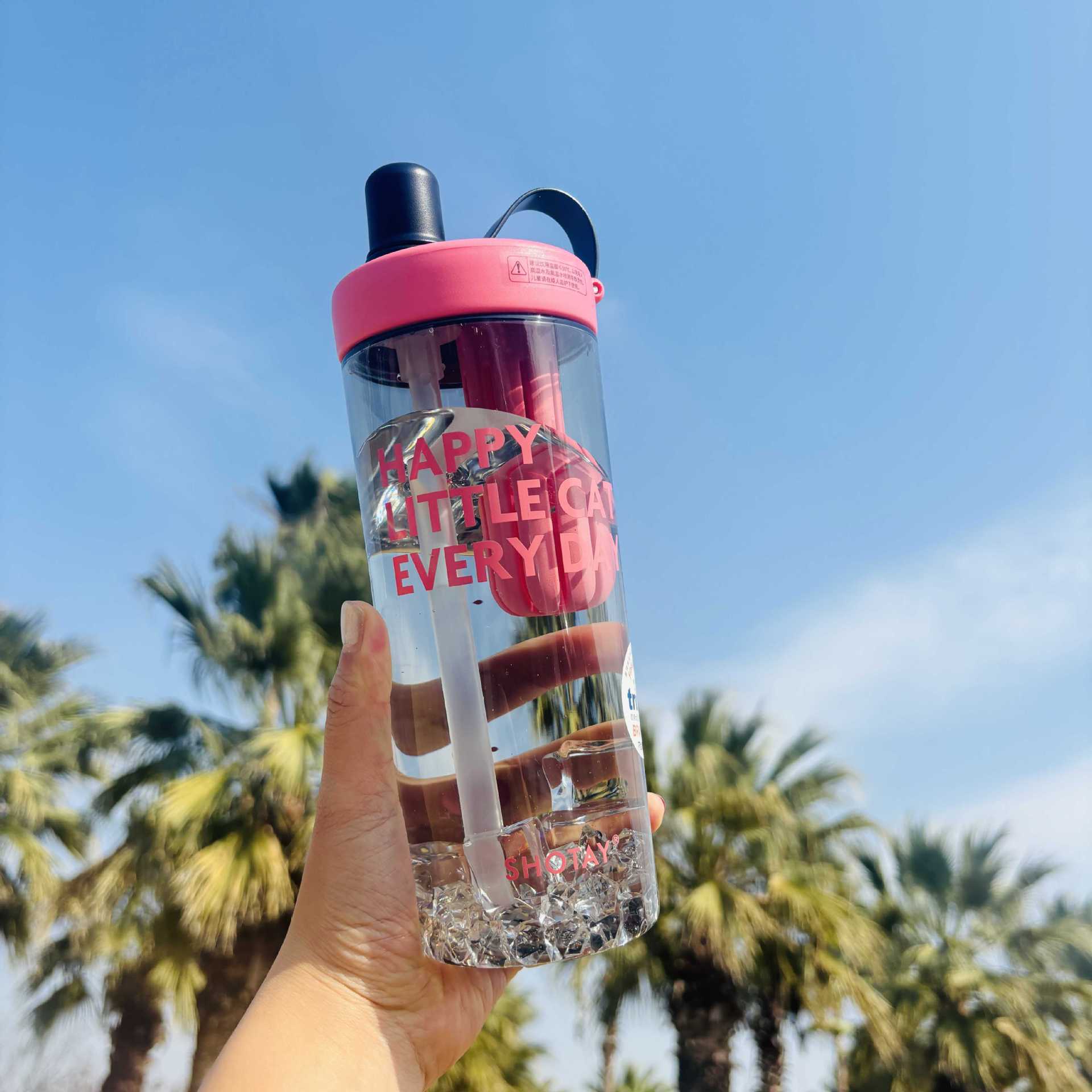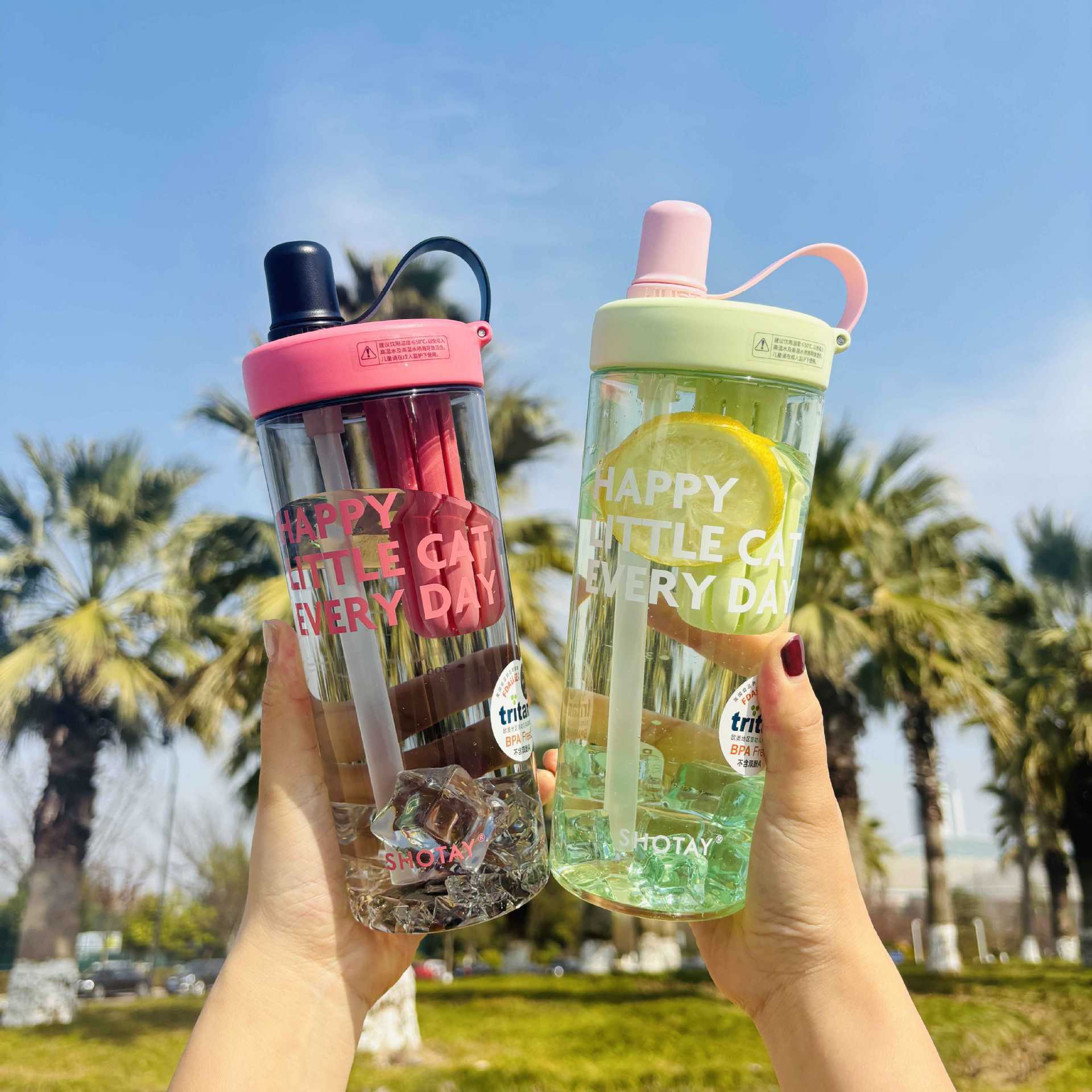 Shangtai ウォーターカップ、夏の見栄えの良いフルーツティーカップ、大容量スポーツテイクアウトストロー、高温耐性ハンドカップ