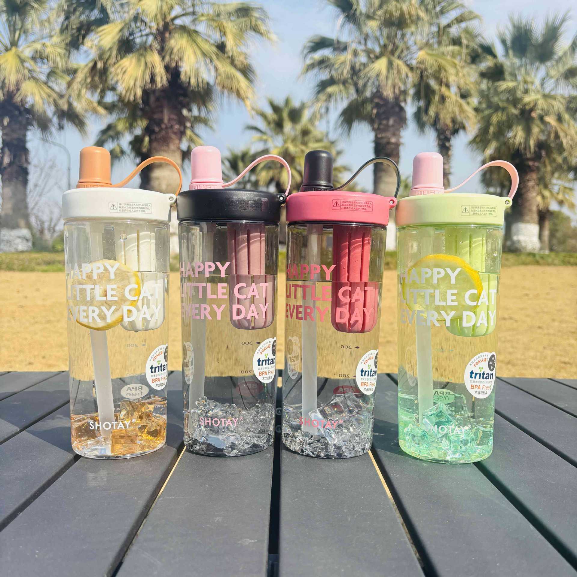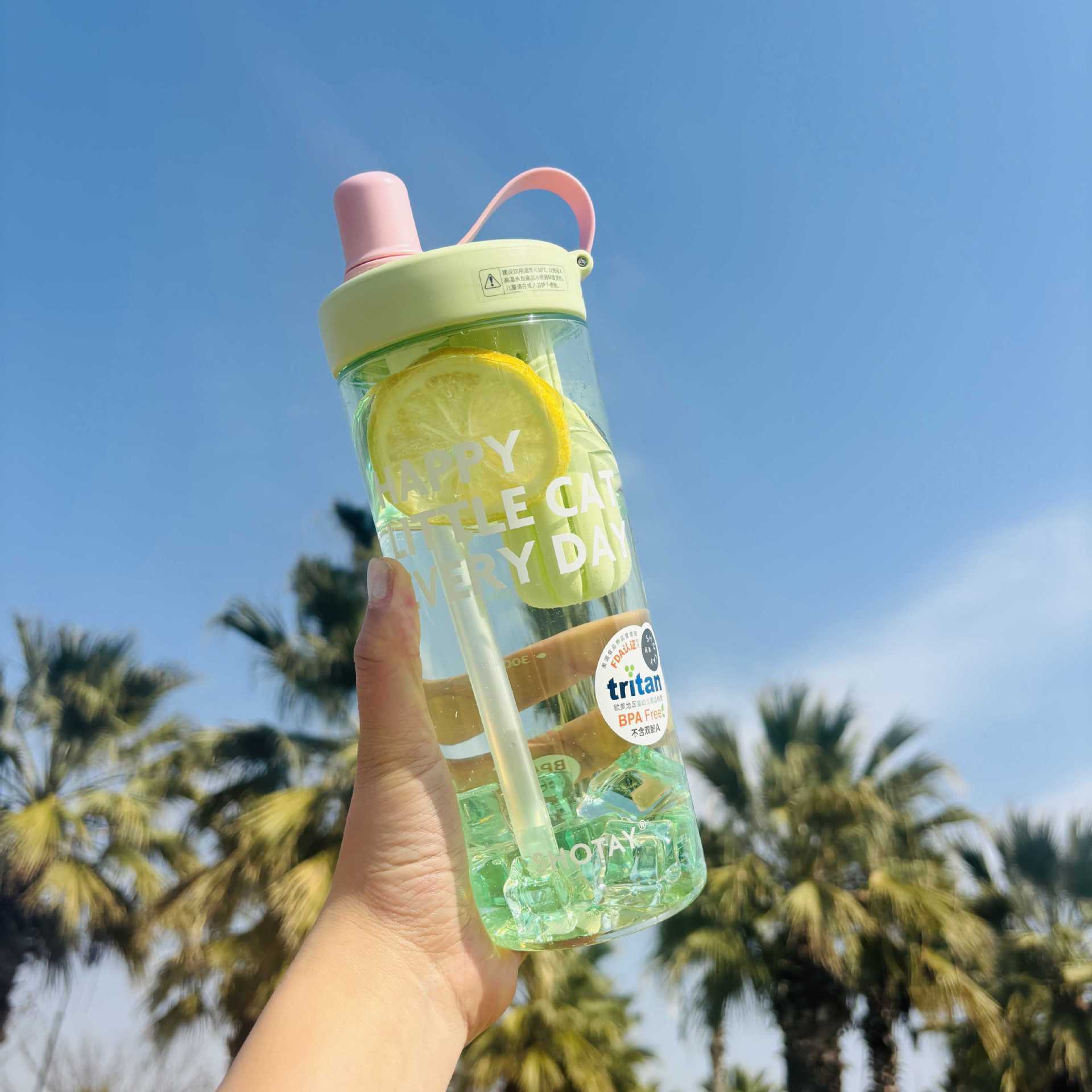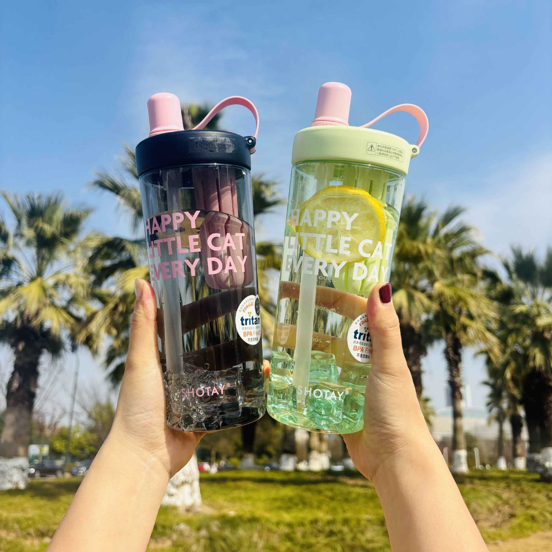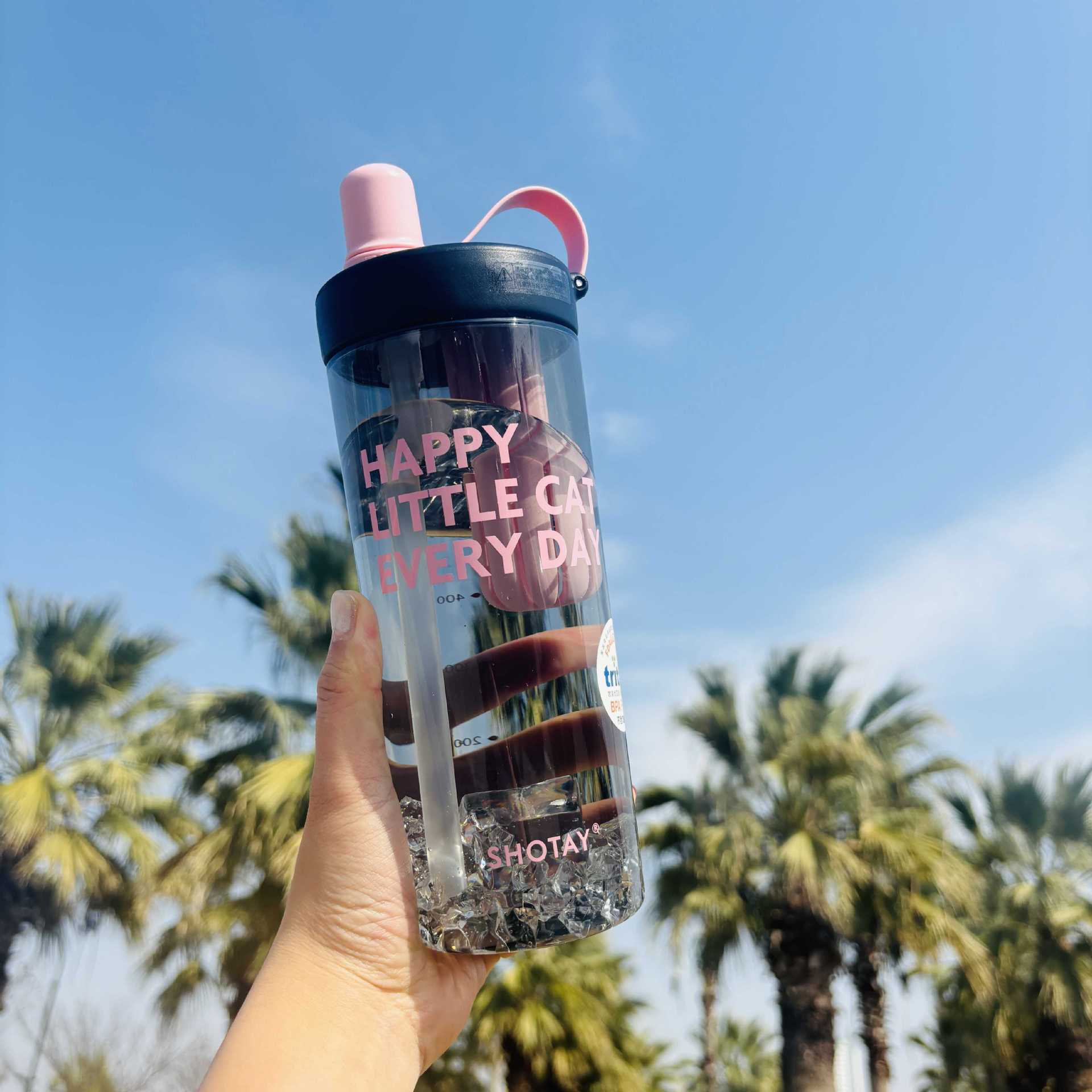 Shangtai ウォーターカップ、夏の見栄えの良いフルーツティーカップ、大容量スポーツテイクアウトストロー、高温耐性ハンドカップ