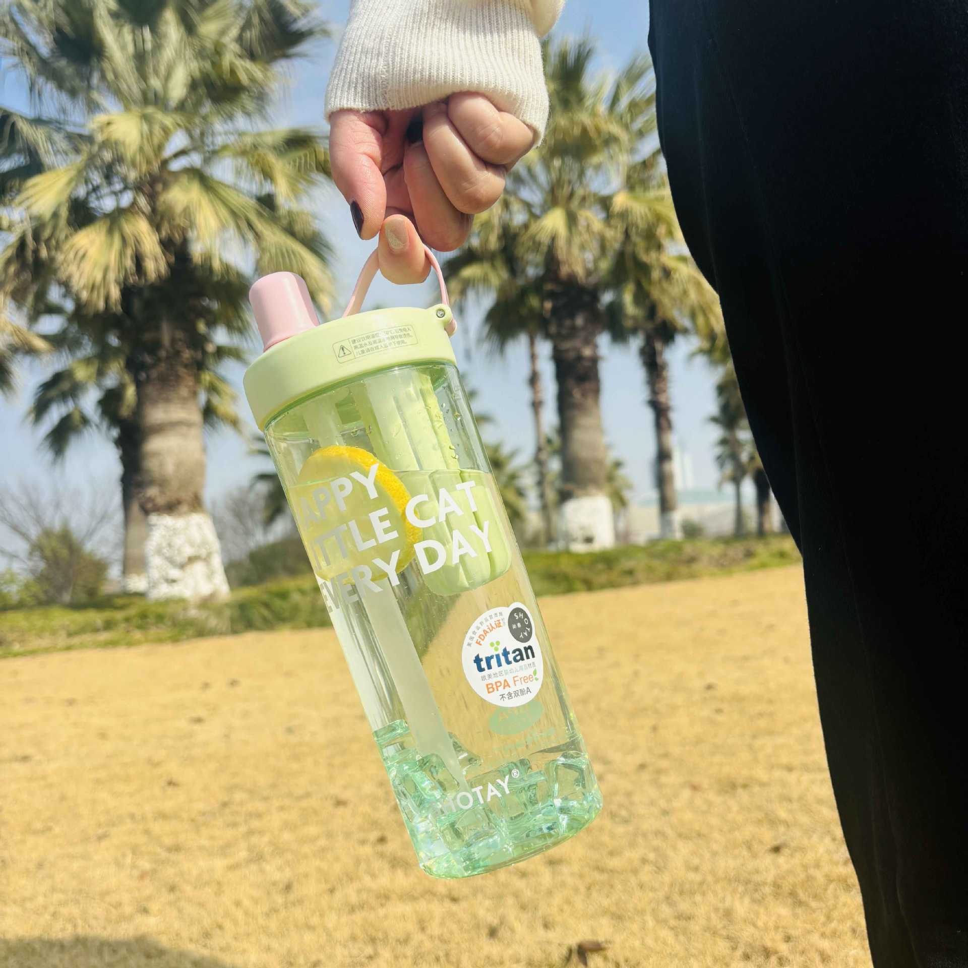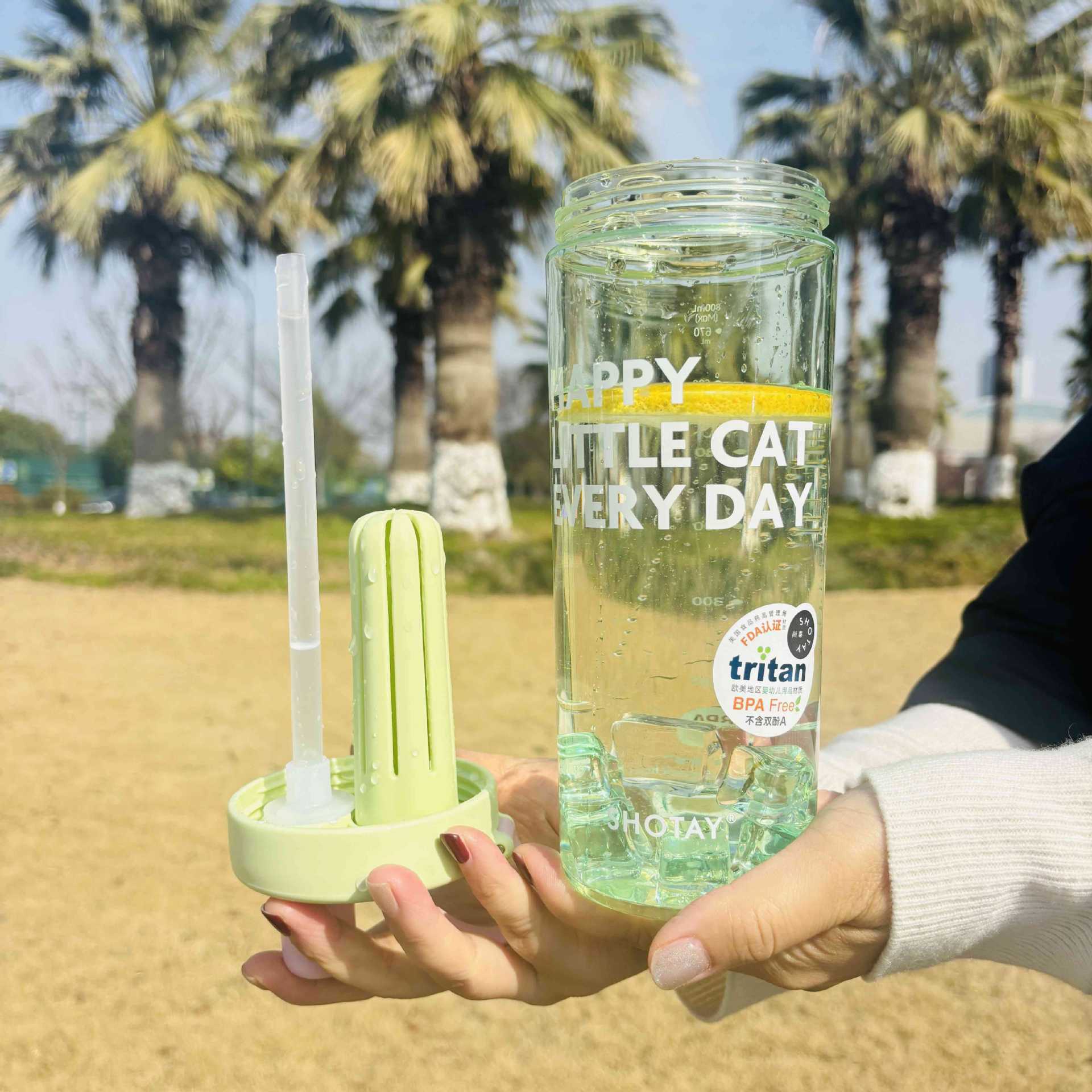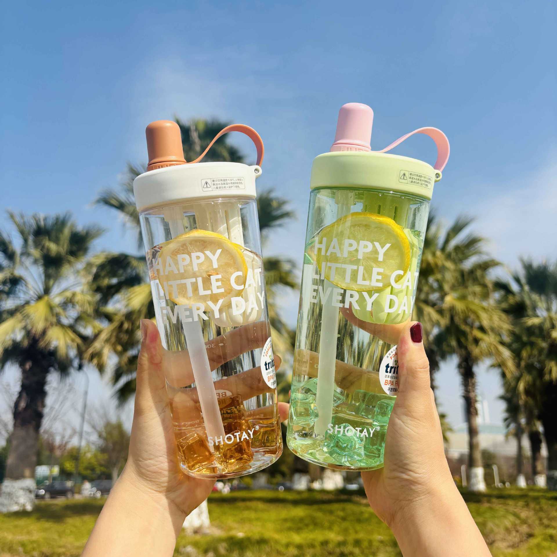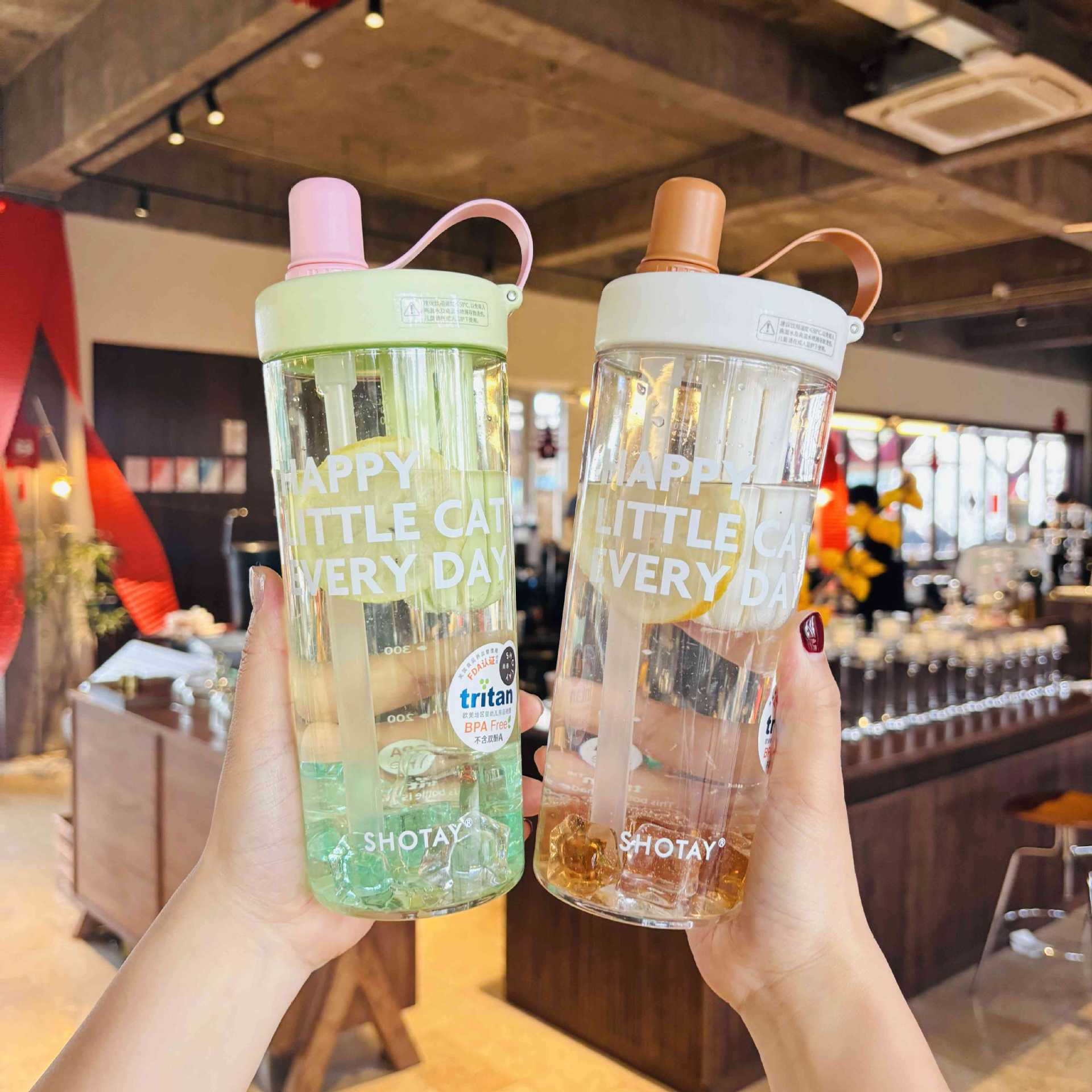 Shangtai ウォーターカップ、夏の見栄えの良いフルーツティーカップ、大容量スポーツテイクアウトストロー、高温耐性ハンドカップ