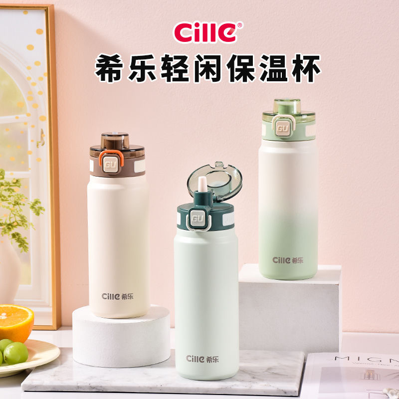 希乐水杯保温杯吸管学生保温杯简约便携大容量直饮杯弹跳盖户外
