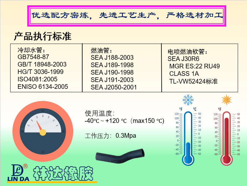 材质: 三元乙丙橡胶(EPDM)/聚酯纤维加强层