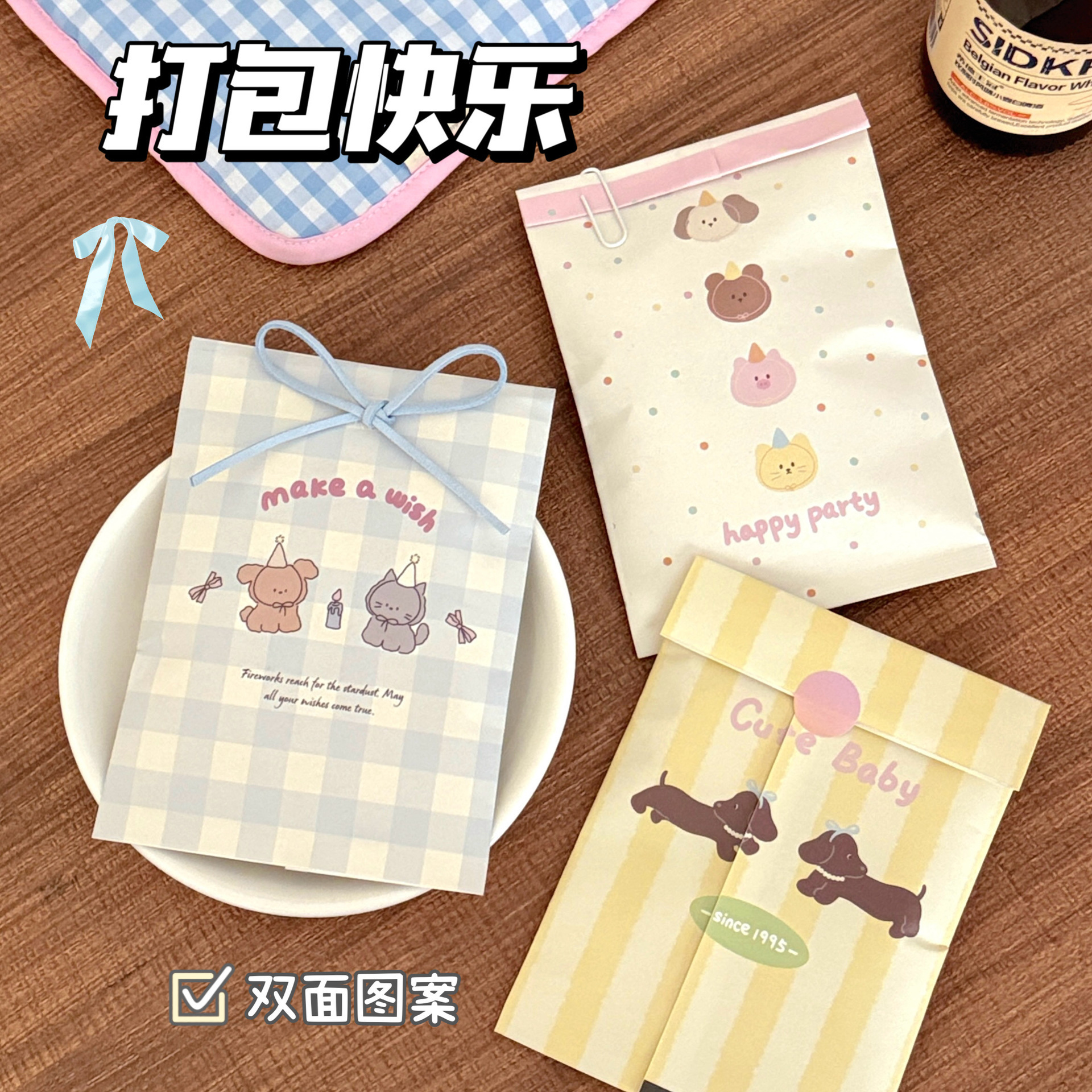 日本のかわいい漫画の子犬の贈り物の紙袋は小さいものの収納袋の少女の心の間食の自封の包装袋を焼きます。