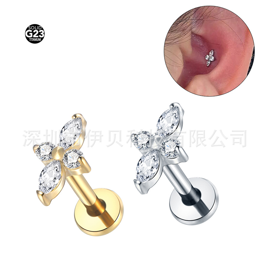 【名称】:跨境0.8x6mm细杆热卖玫瑰金耳饰不锈钢细杆耳钉微镶锆石耳骨钉