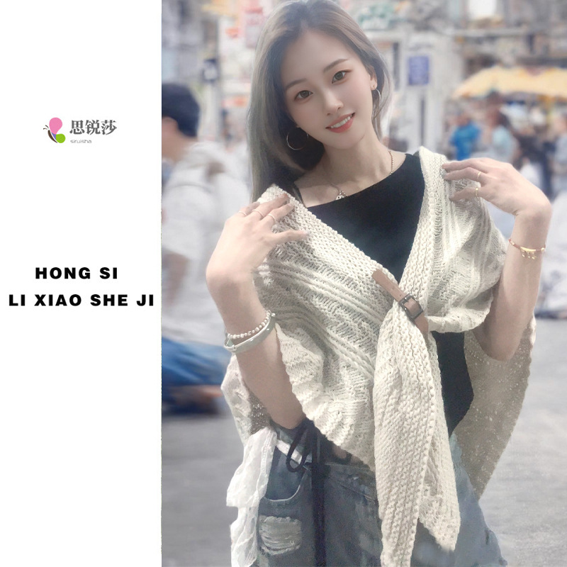 ホット販売スポットアイスシルク中空サスペンダースカート夏のショートトップ空調ルームショールニットブラウス女性のためのルーズ
