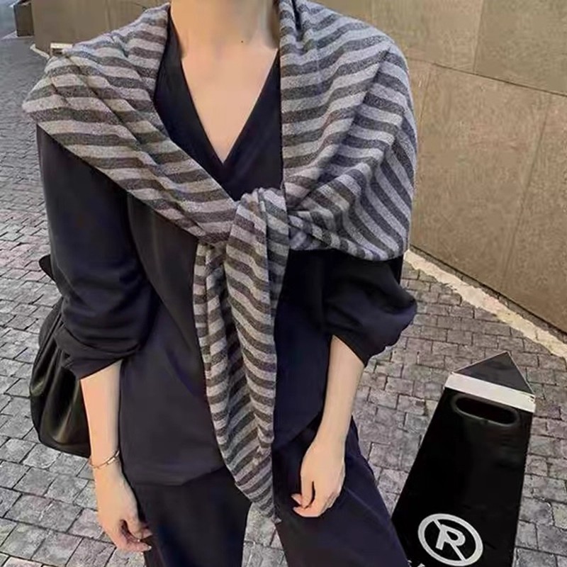 慵懒感条纹披肩女外搭2025新款围巾韩系时尚气质针织三角巾小坎肩