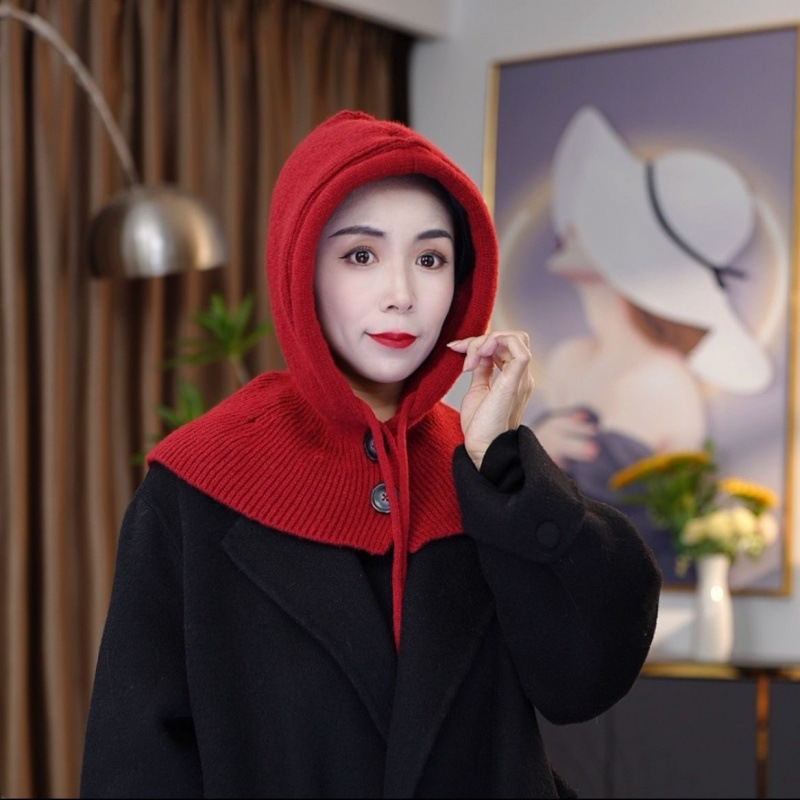 韓国のバラクラファー帽子秋冬保温帽子女性ファッションマフラー一体ニット耳保護ウール帽子