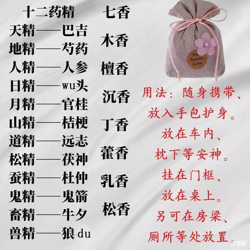 道家の伝統的な十二精薬七香錦嚢は不運な朱砂福袋の漢方薬の材料に身につけて香嚢の香包を持ちます。
