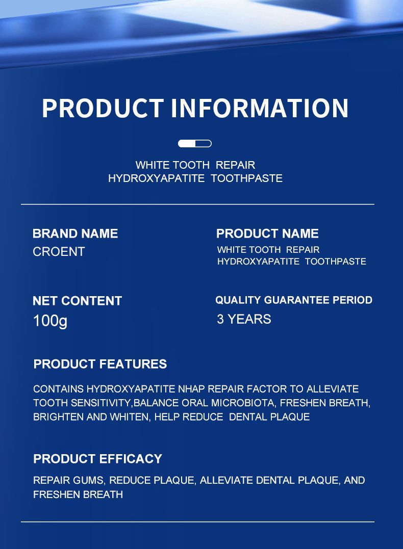 【無ラベル】国境を越えた人気の7.5%ハイドロキシアパタイト歯磨き粉完全英語版