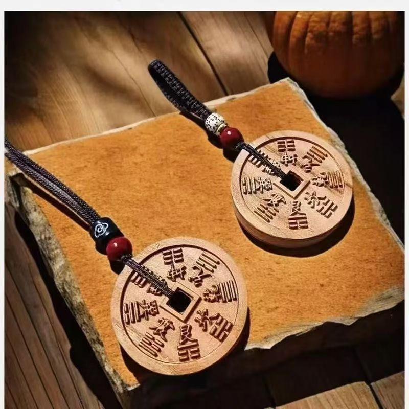 新商品の逸品のオリジナルの道家のアクセサリの桃木の山の鬼はお金を使って九宮の八卦の平安のキーホルダーのペンダントをぶら下げます。