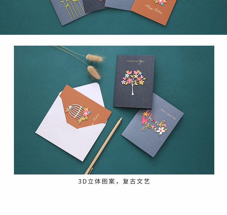 インスタ風レトロ3D立体グリーティングカード、高品質折りたたみ式祝福カード、封筒付き、教師の日ギフト