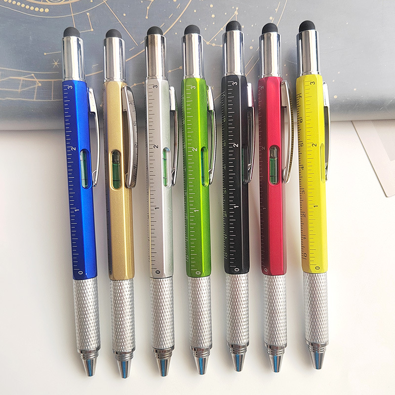 多機能工具ペン六合一水平計スケールタッチペン一字十字二頭ドライバーボールペン