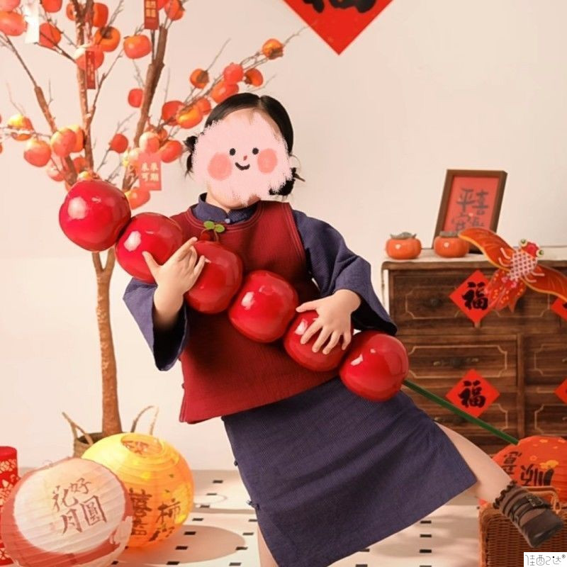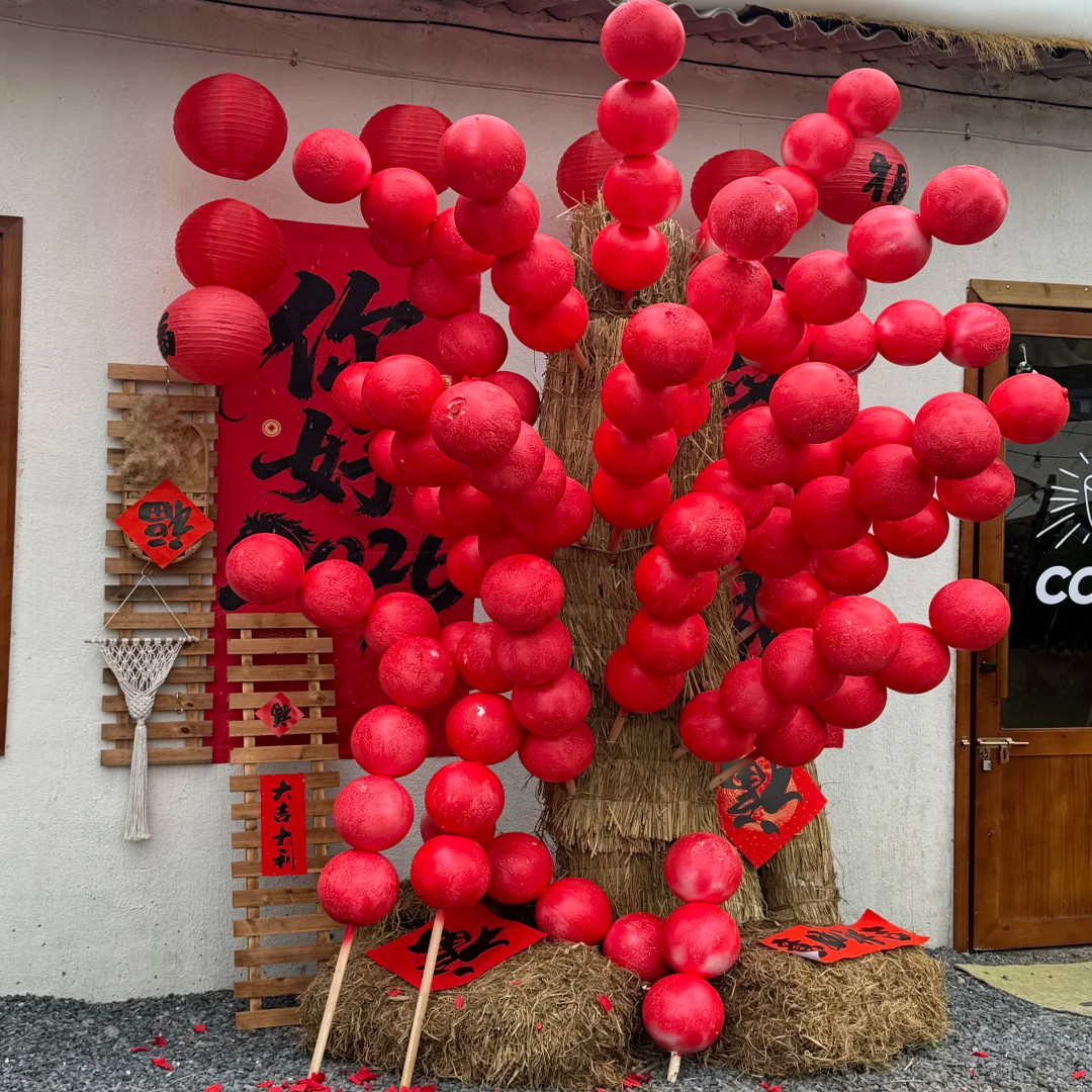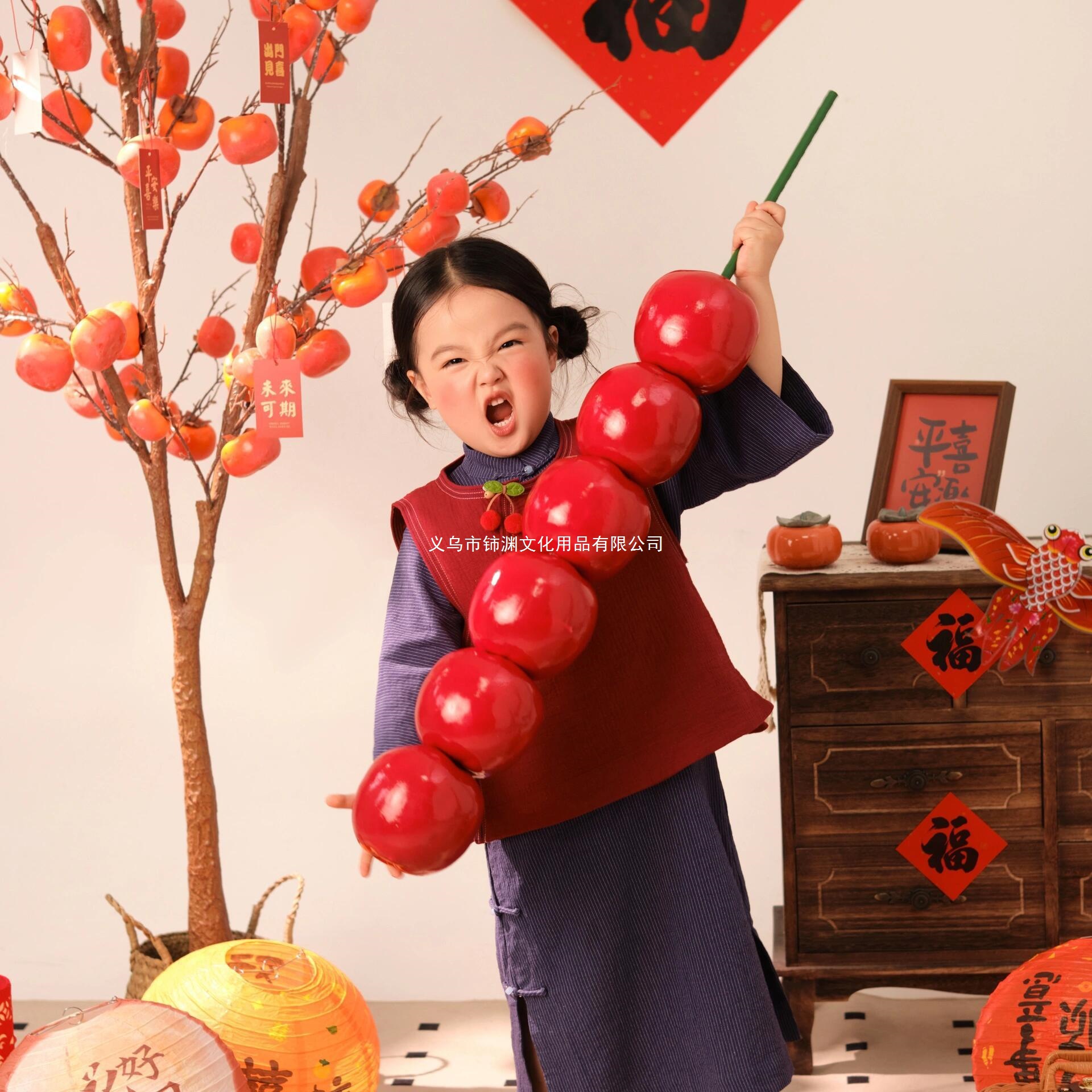 2026马年拍照道具大串仿真糖葫芦玩具元旦喜庆红色装饰柿子树摆设