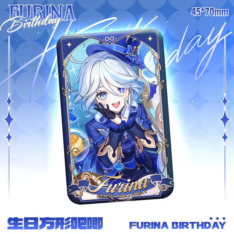 ys周边芙宁娜水神生日限定方形双闪徽章周边痛包装饰吧唧