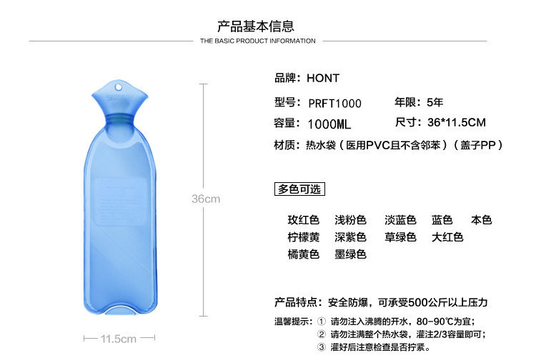 クロスボーダー高密度500ml1000mlPVC充水湯たんぽ防爆圧湯たんぽ厚手防爆工场