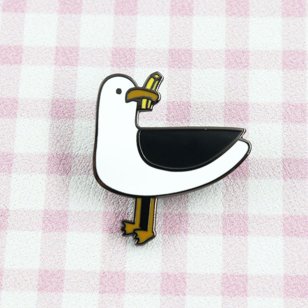 小動物のブローチアニメが可愛いです。ポテトを盗むカモメのブローチです。