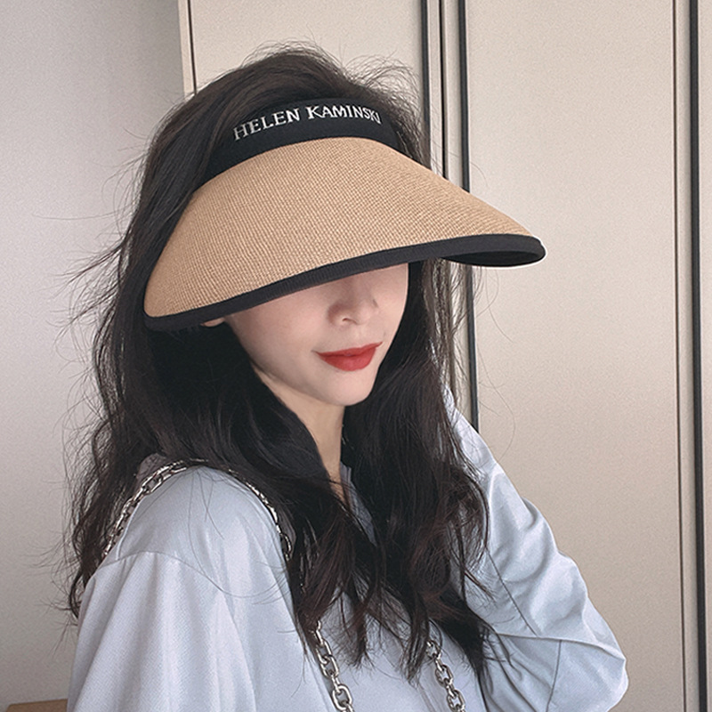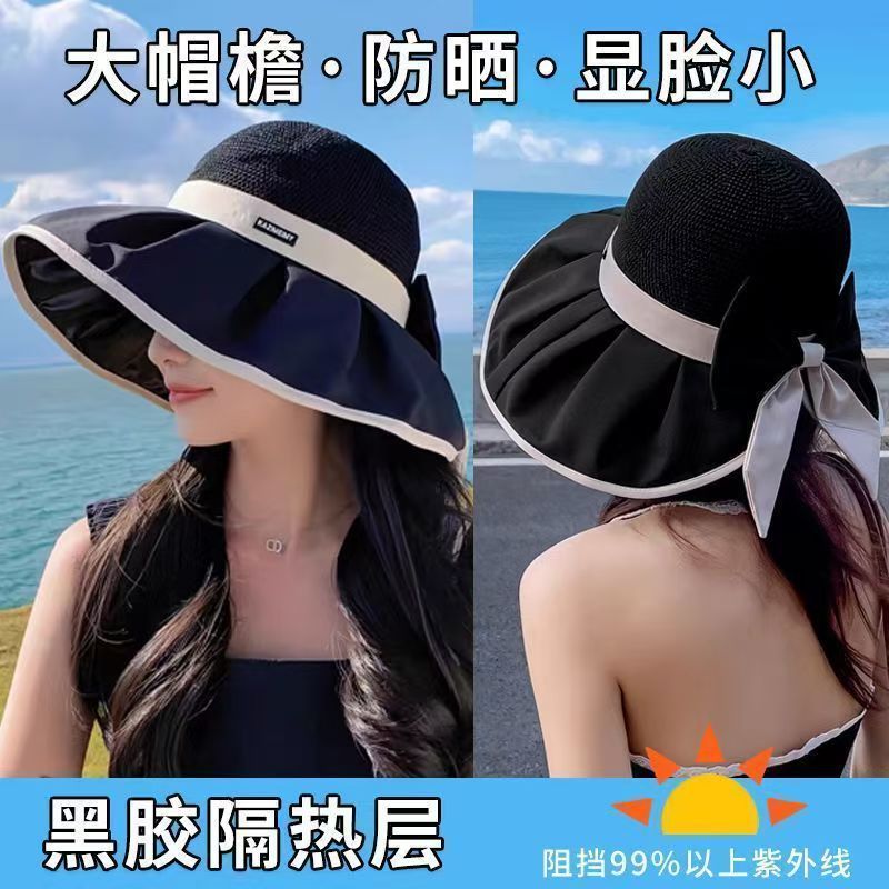 新しい日焼け止め帽子の女性の大きなつばの夏の黒いゴムの日よけの空のトップの自転車は顔の太陽の帽子の新型の日焼け止めの帽子を覆います。
