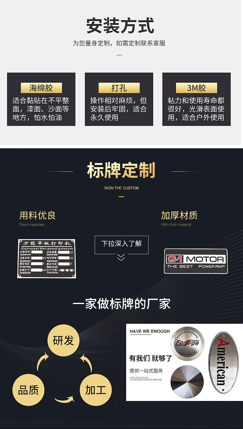金属標識のカスタム製作、ステンレスレーザー彫刻、アルミ標識、UVバルブ標識、機械用金属銘板、アルミニウム合金
