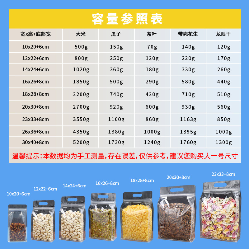 使い捨て穀物包装袋、茶葉用マット加工ジップロック袋、軽食袋、小型ビニール袋、透明包装袋