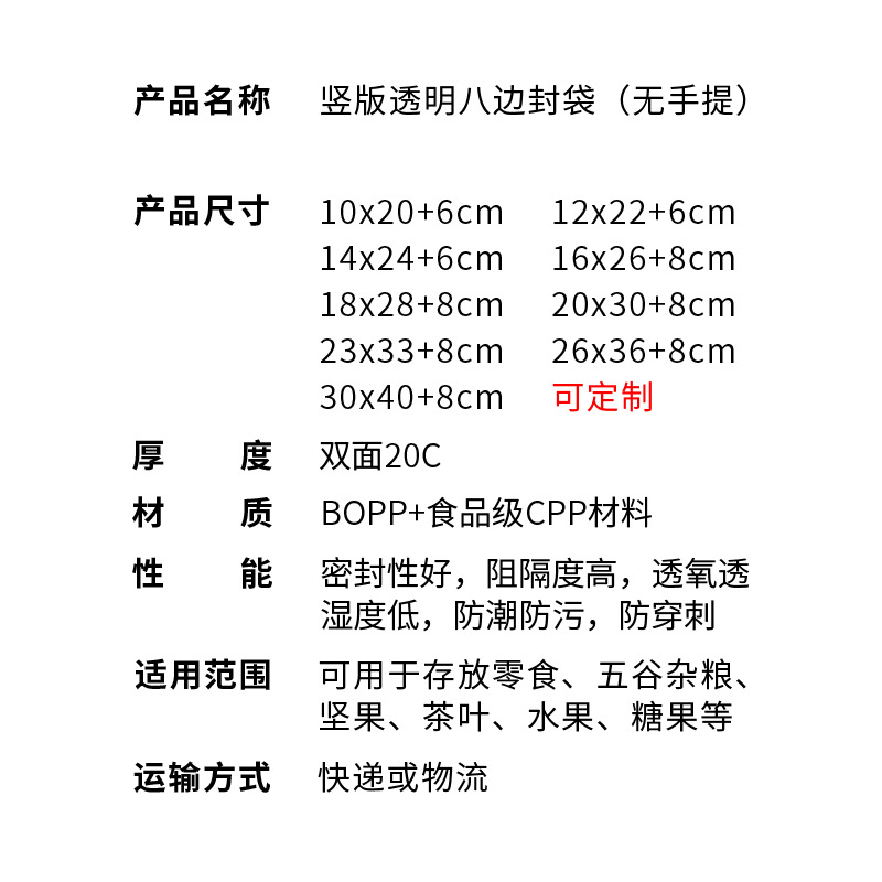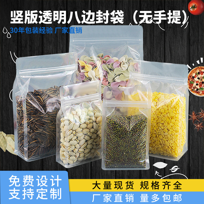 竖版透明八边封袋10C无手提式加厚零食面包干果杂粮压条自封袋子