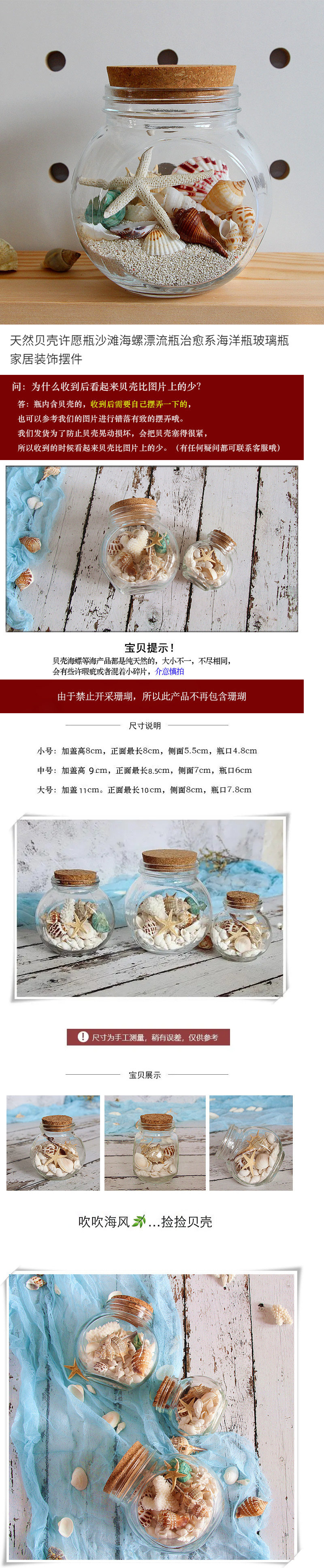 完成品の貝殻の願い事の瓶の砂浜のサザエの漂流瓶は海洋の瓶のガラスの瓶の材料を包んで装飾の置物を飾ります。