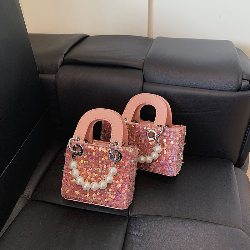 2025春新作戴妃スパンコール子供用バッグ親子ミニ真珠手提げ小方バッグ片肩斜め掛けアクセサリーバッグ