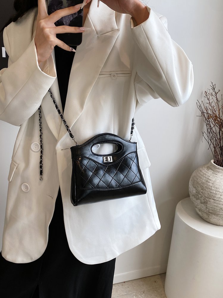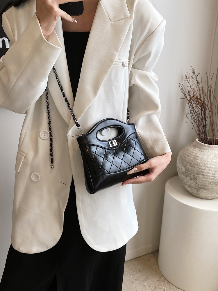 高級感のある小香風ゴミ袋バケツバッグ菱格チェーンのハンドバッグ