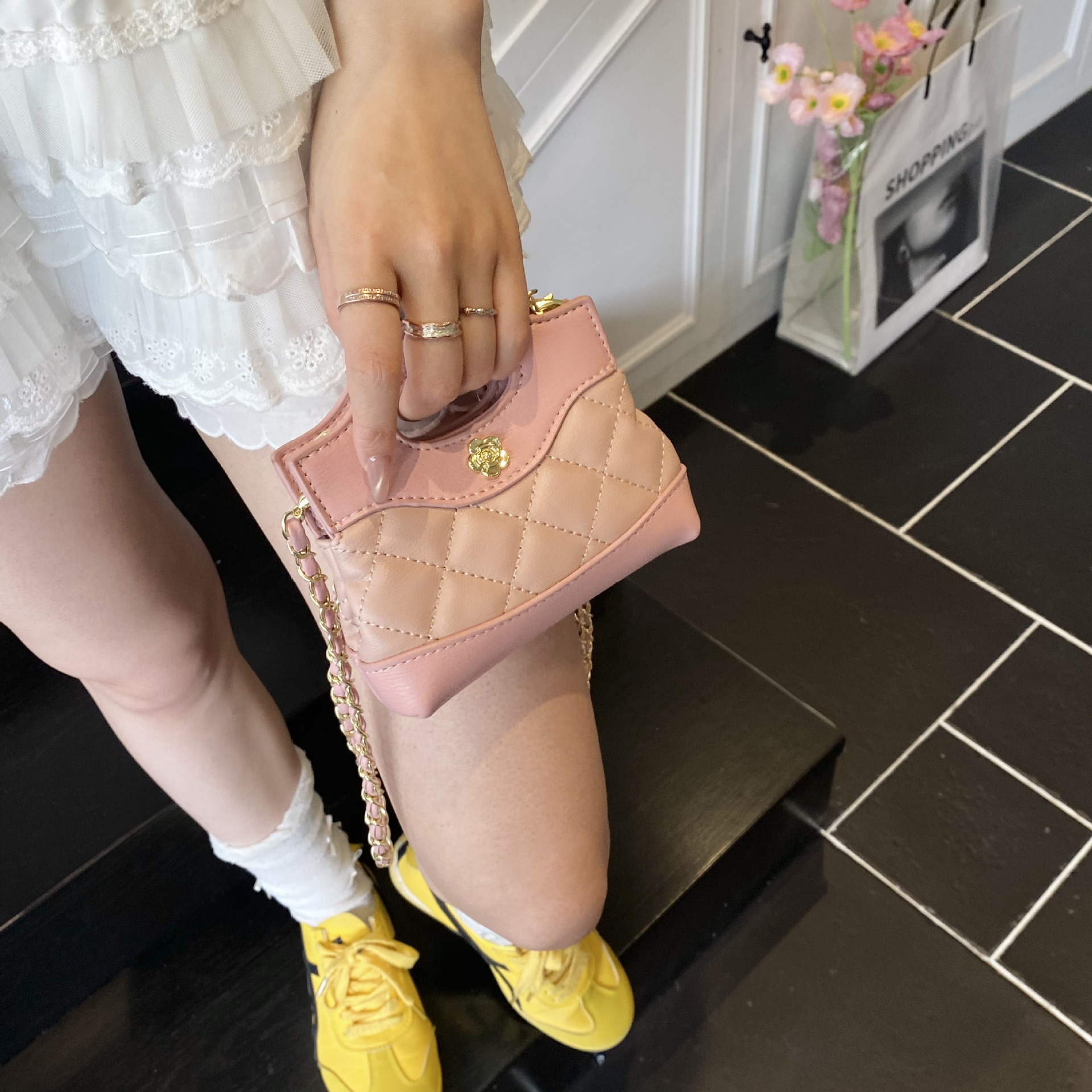 小香風百合大容量ショルダーバッグ2025新型菱格チェーンハンドバッグシンプルショルダーバッグ