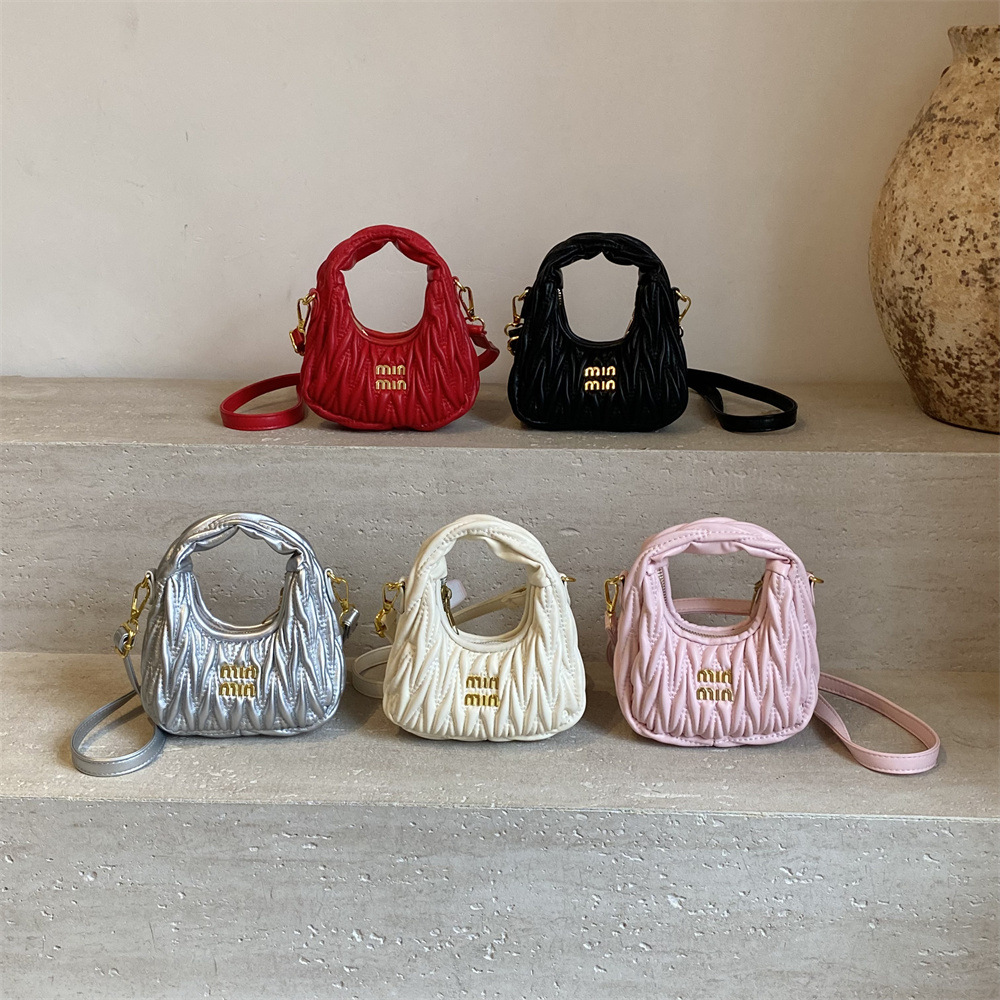 时髦洋气mini小包包女小众褶皱云朵斜挎包手提迷你配饰饺子口红包
