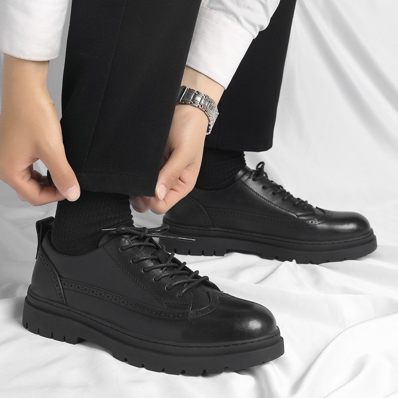 牛革本革通気性男性靴男性靴カジュアル黒ビジネス英倫風靴