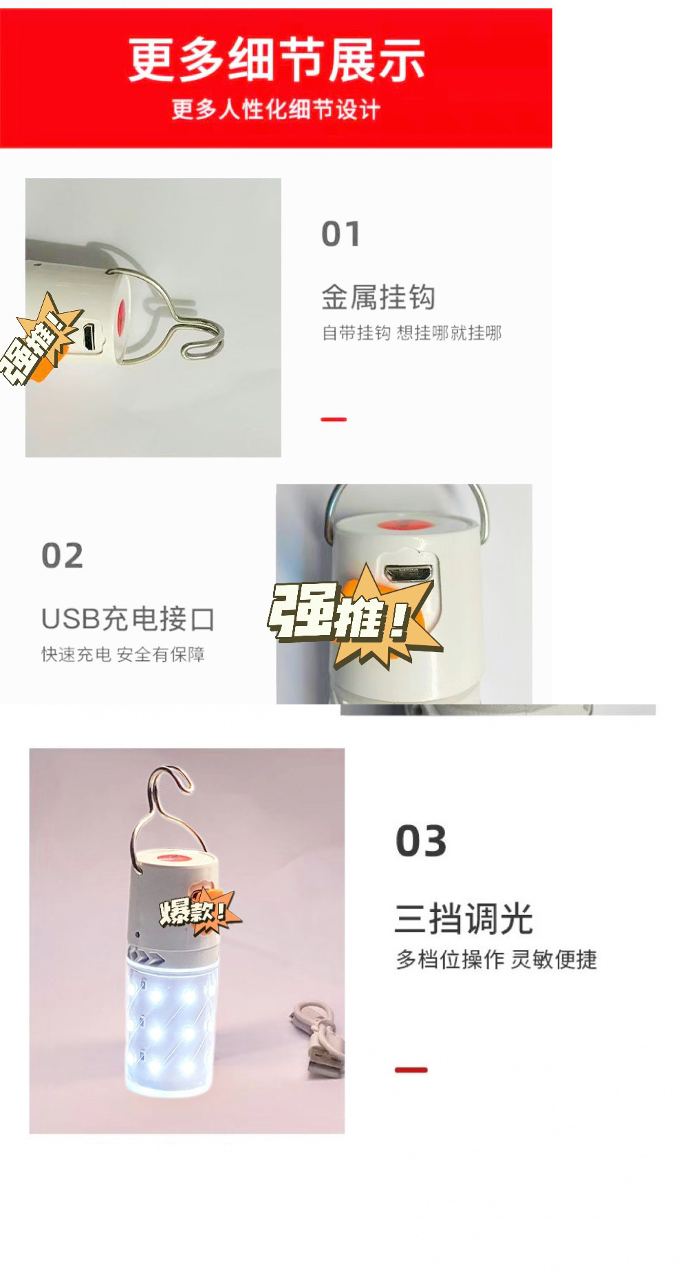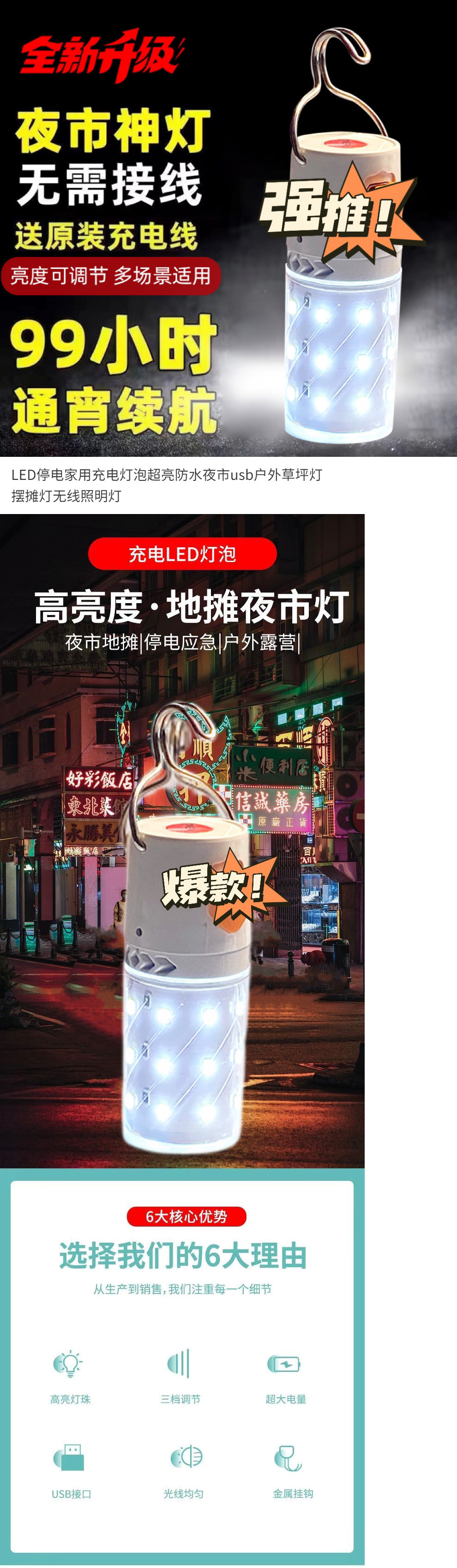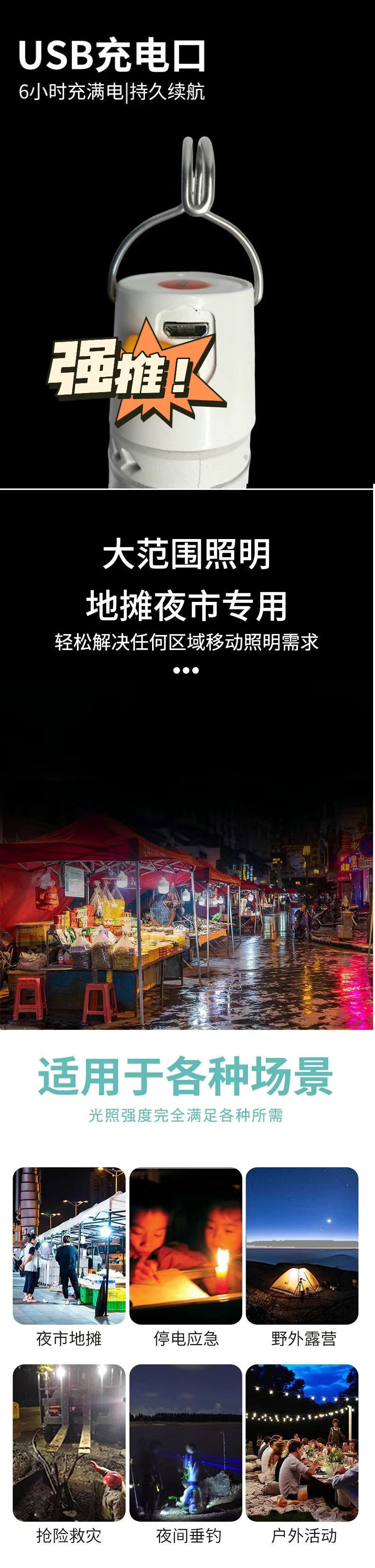 夜市灯泡露营灯灯高亮LEDUSB充电停电户外摆摊应急照明灯家用地摊