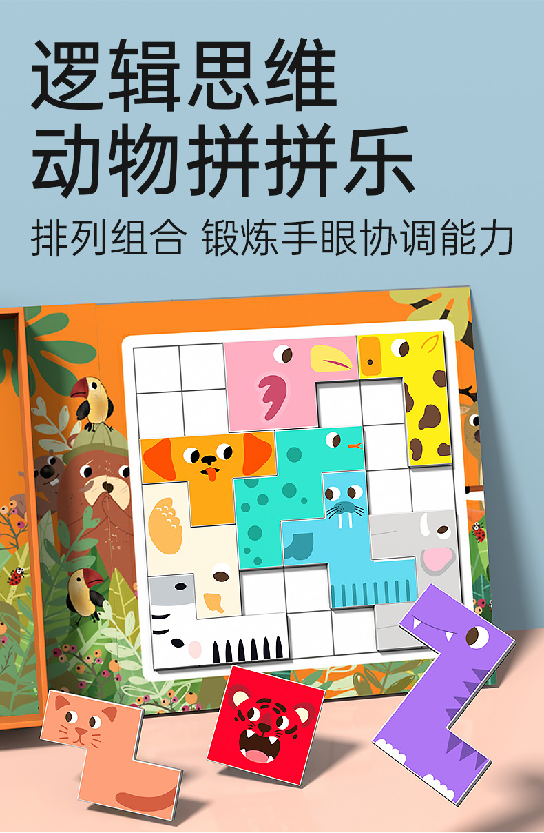子供磁気動物パズルロシアブロック趣味パズル論理思考訓練早教知育玩具