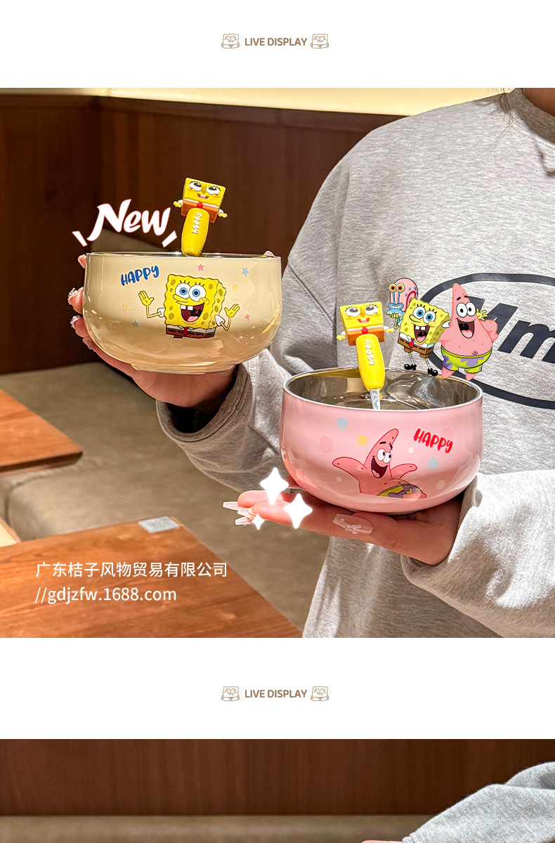 海绵宝宝陶瓷餐具碗碟套装家用2025新款可爱情侣碗筷高颜值碗盘子