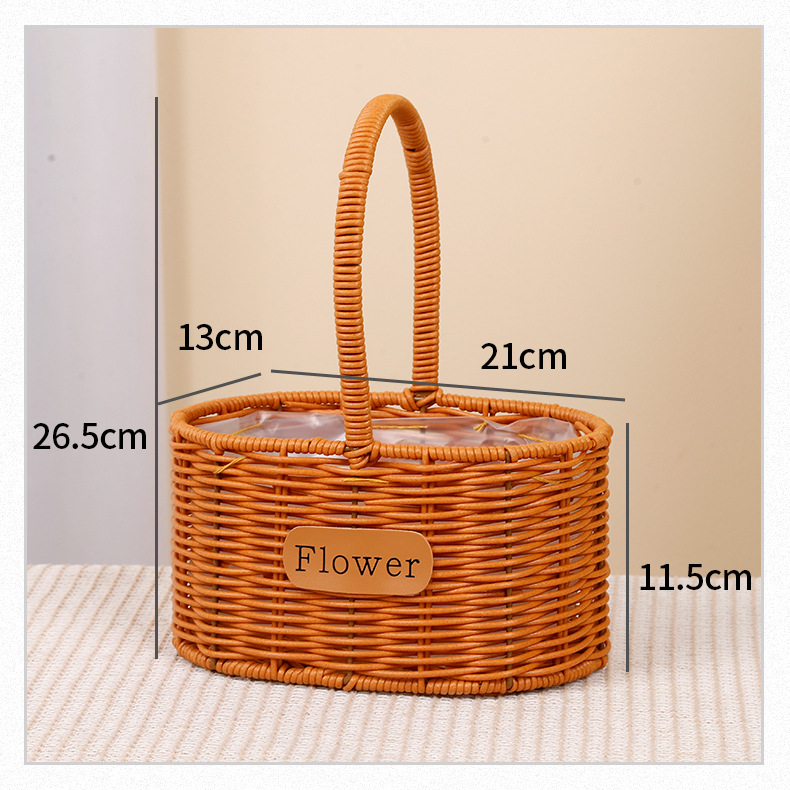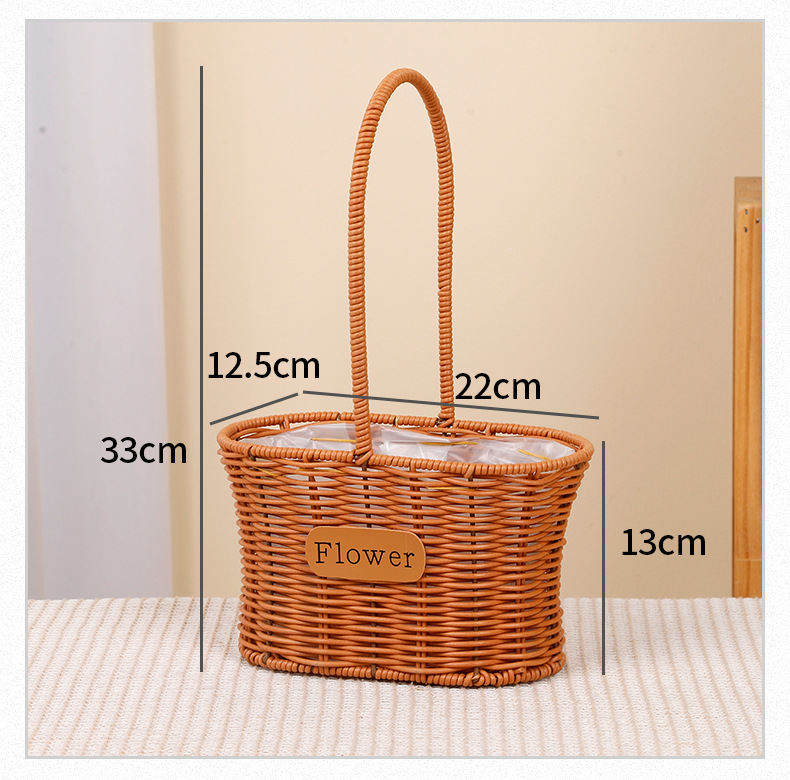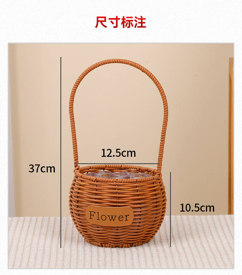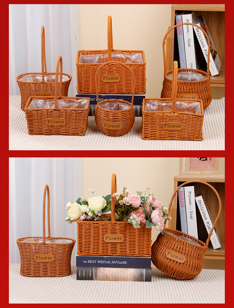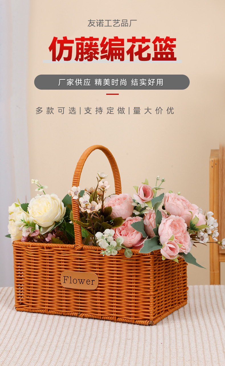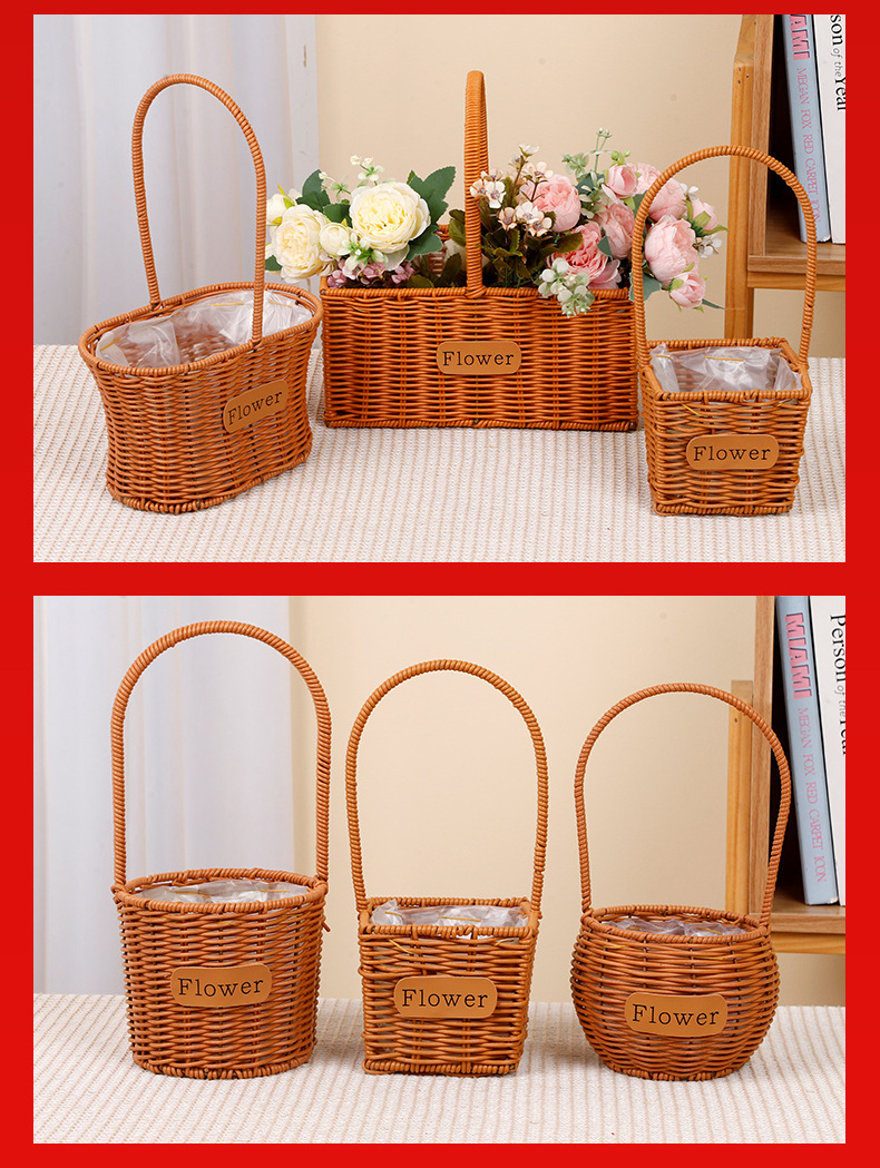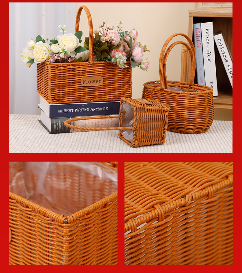模造籐のポータブルフラワーアレンジメント手織りフラワーバスケットリビングルームの装飾品牧歌的なバスケットお土産包装フラワーバスケット