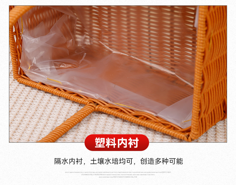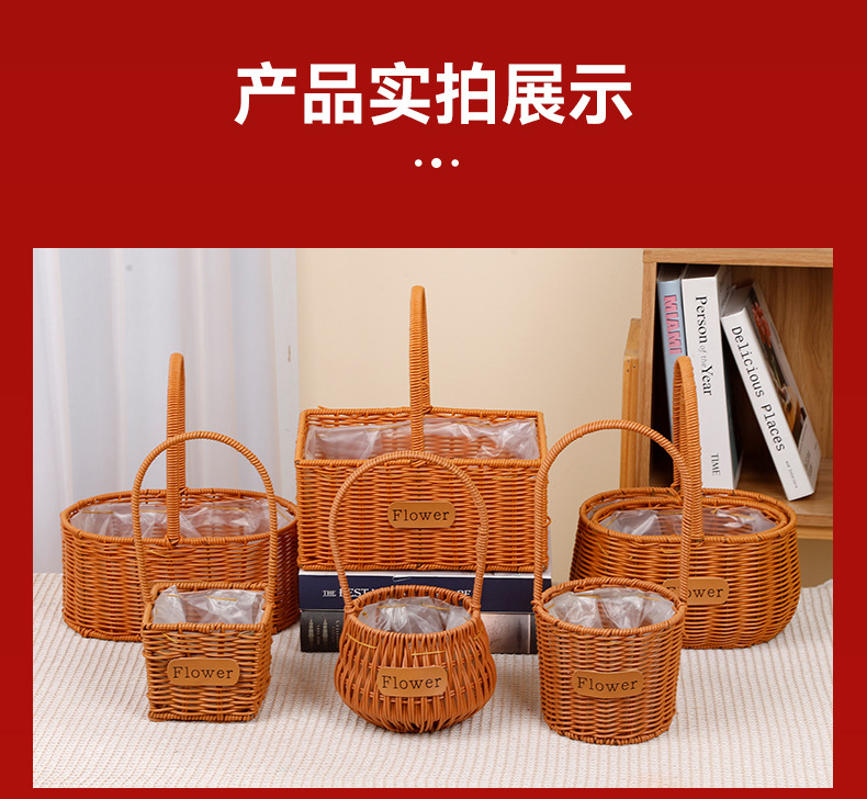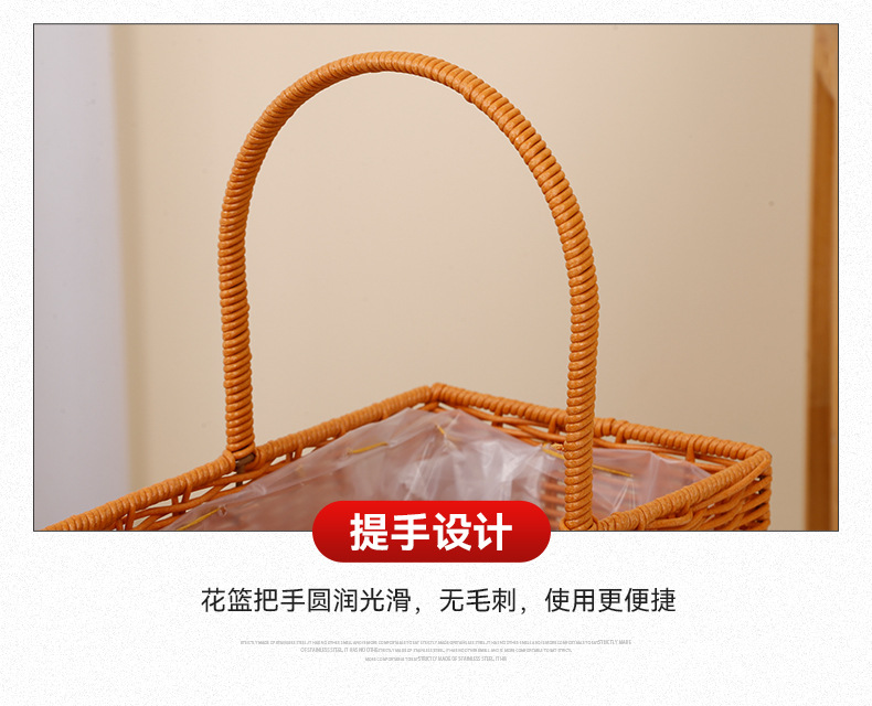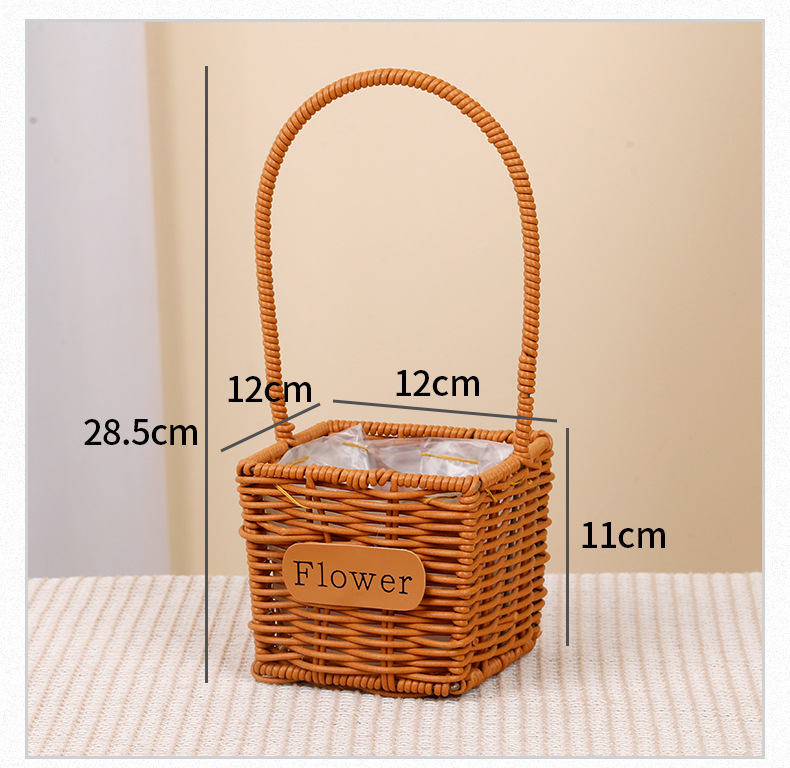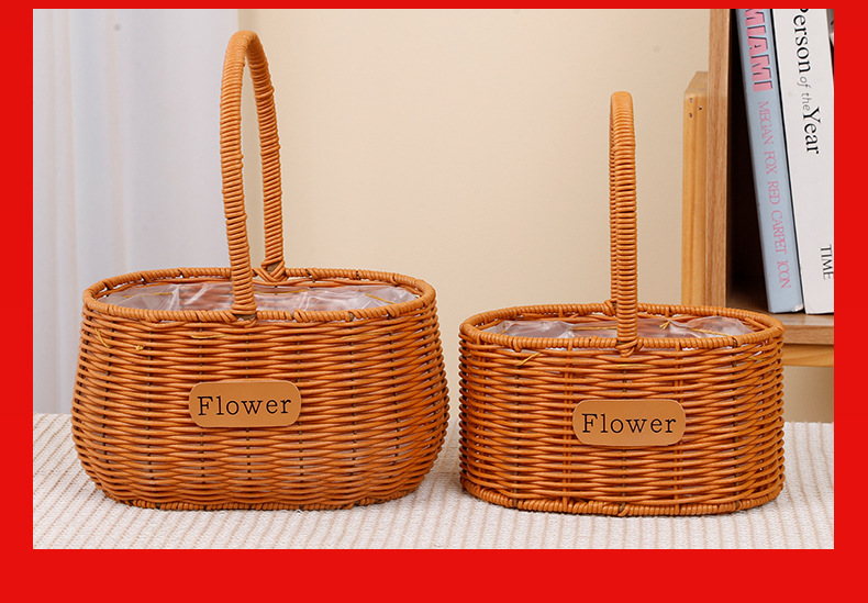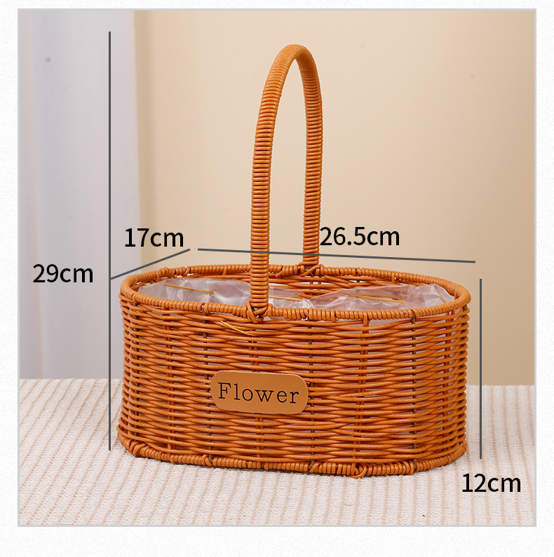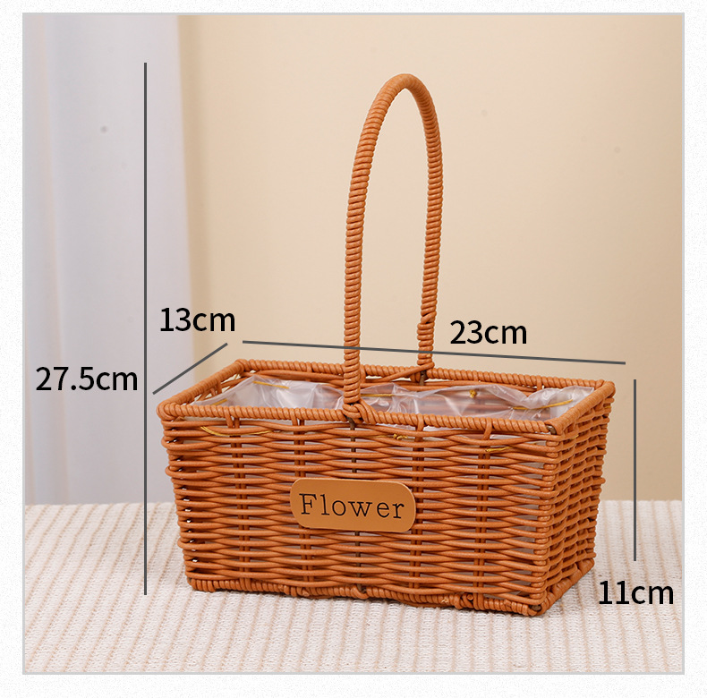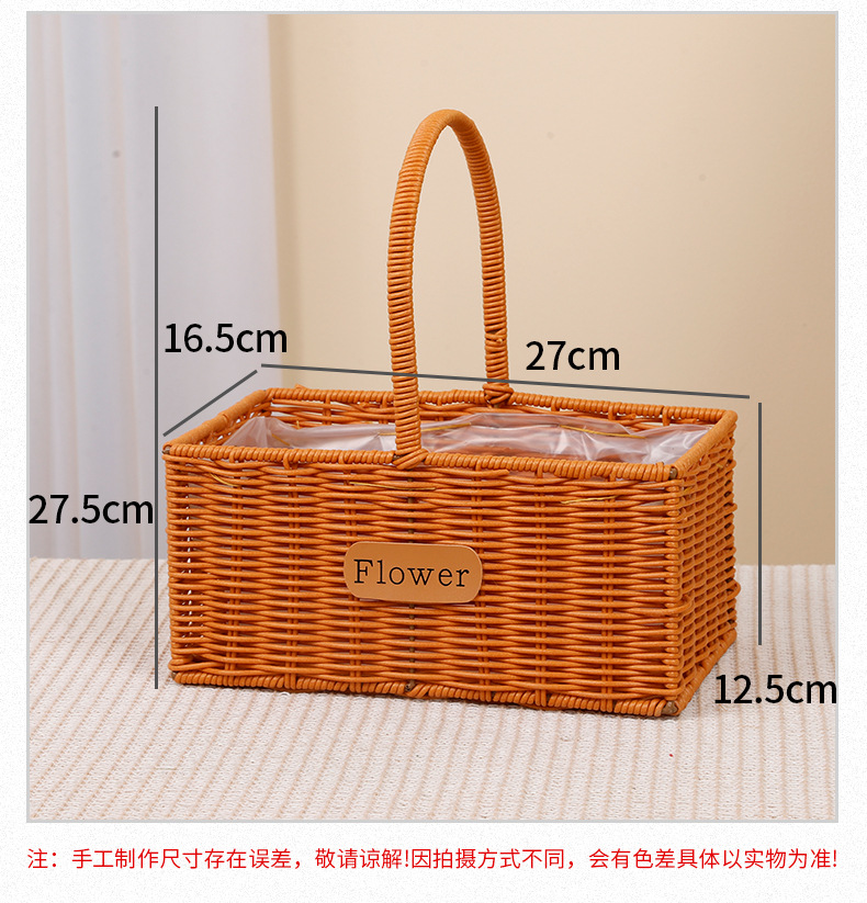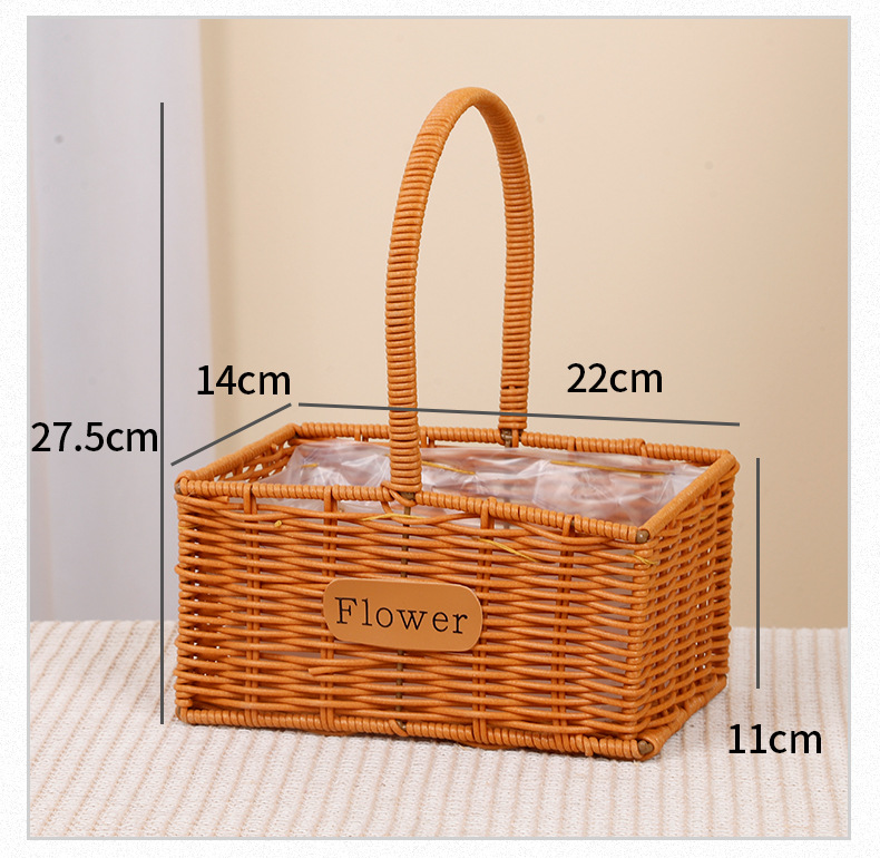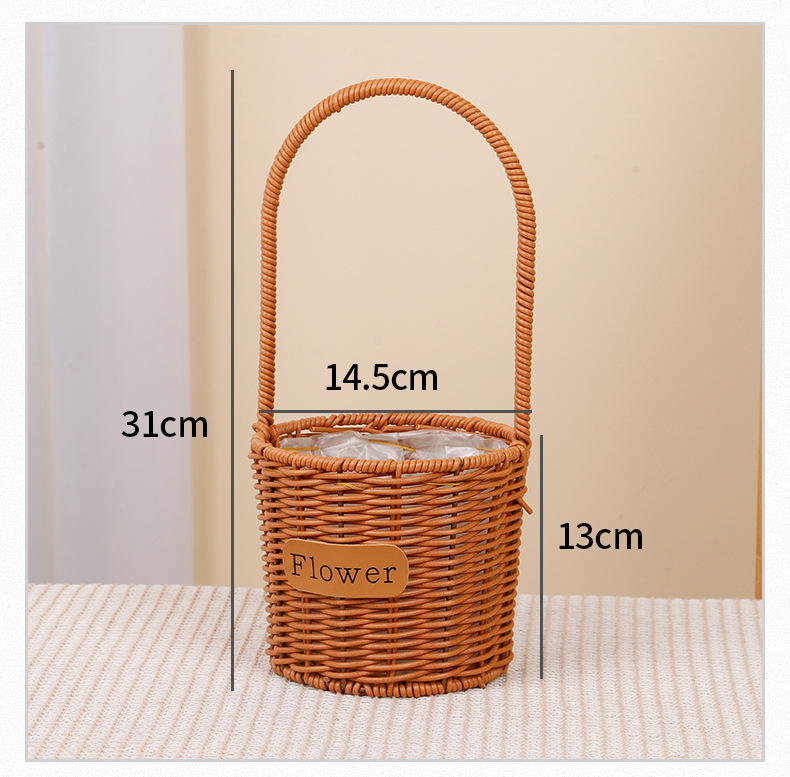 模造籐のポータブルフラワーアレンジメント手織りフラワーバスケットリビングルームの装飾品牧歌的なバスケットお土産包装フラワーバスケット