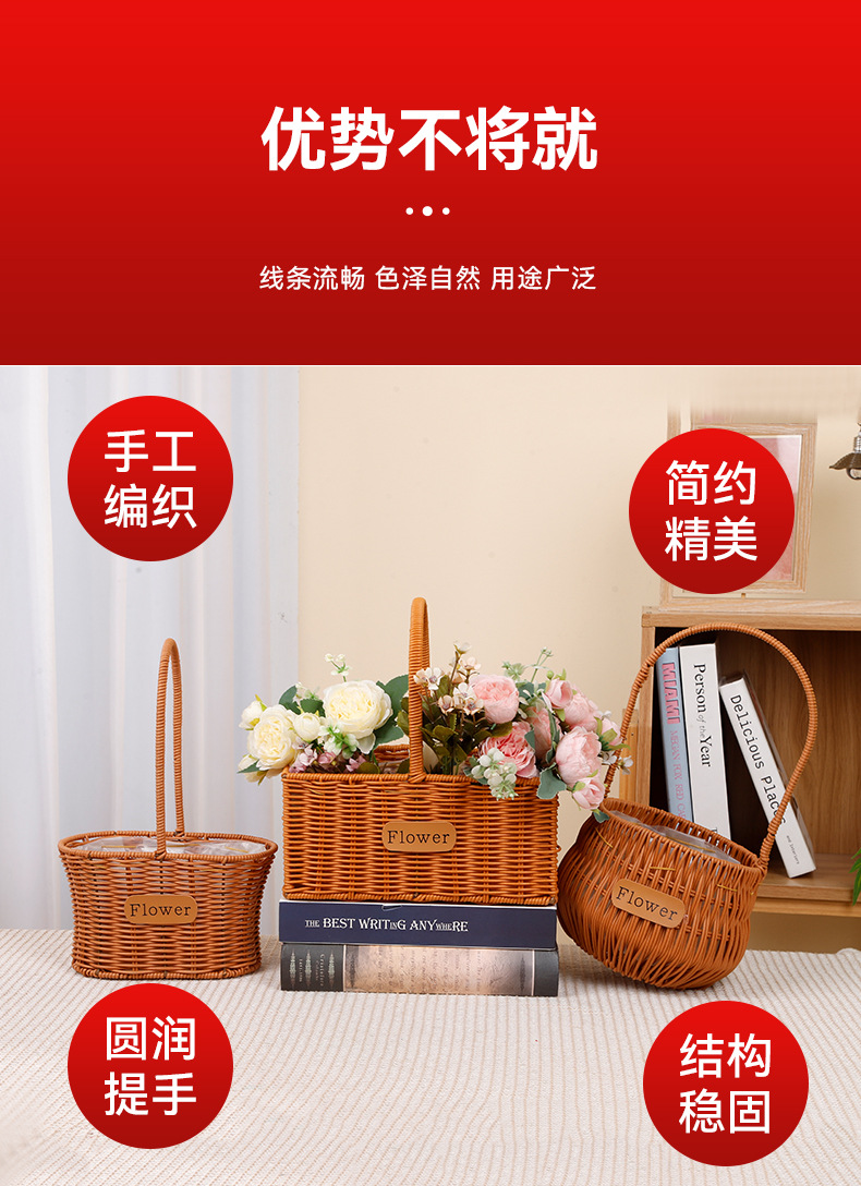 草編藤編花籠卸売り生け花田園多肉花籠手提げ卵花籠新鮮花籠メーカー