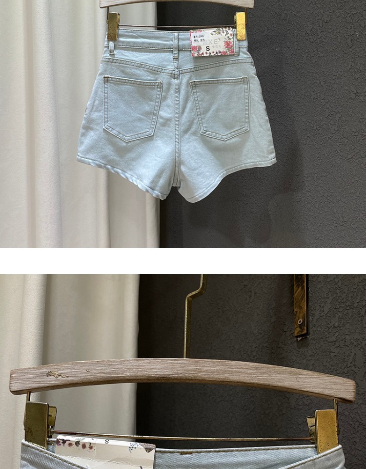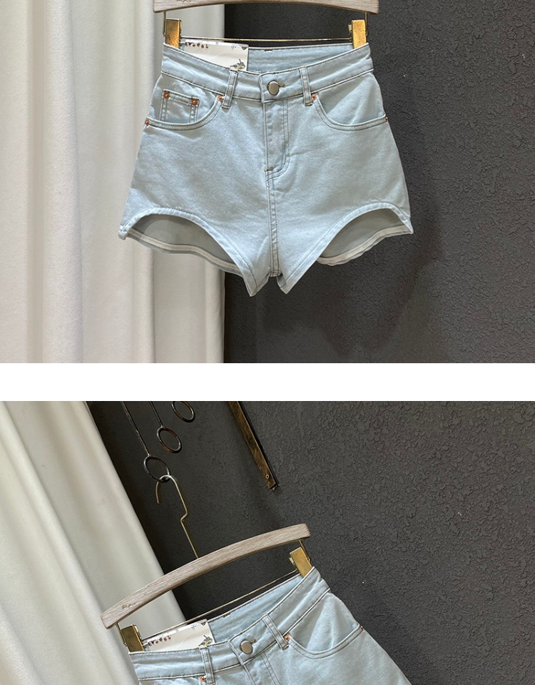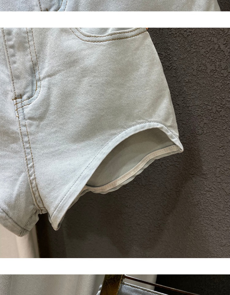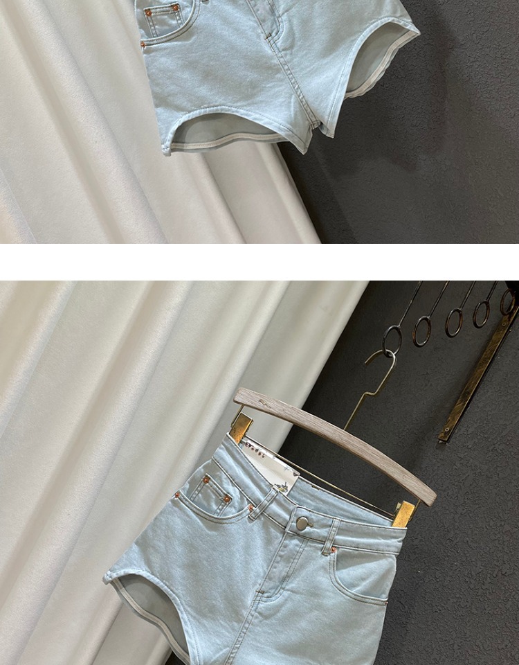 2025年夏の新作ファッション、スリムで多用途、ハイウエスト、タイトフィット、ウォッシュドストレッチワイドレッグデニムショートパンツ、女性用ホットパンツ、薄手