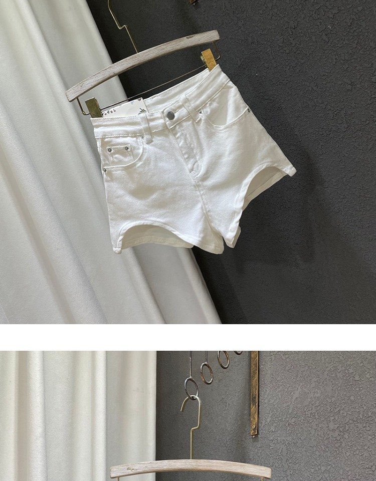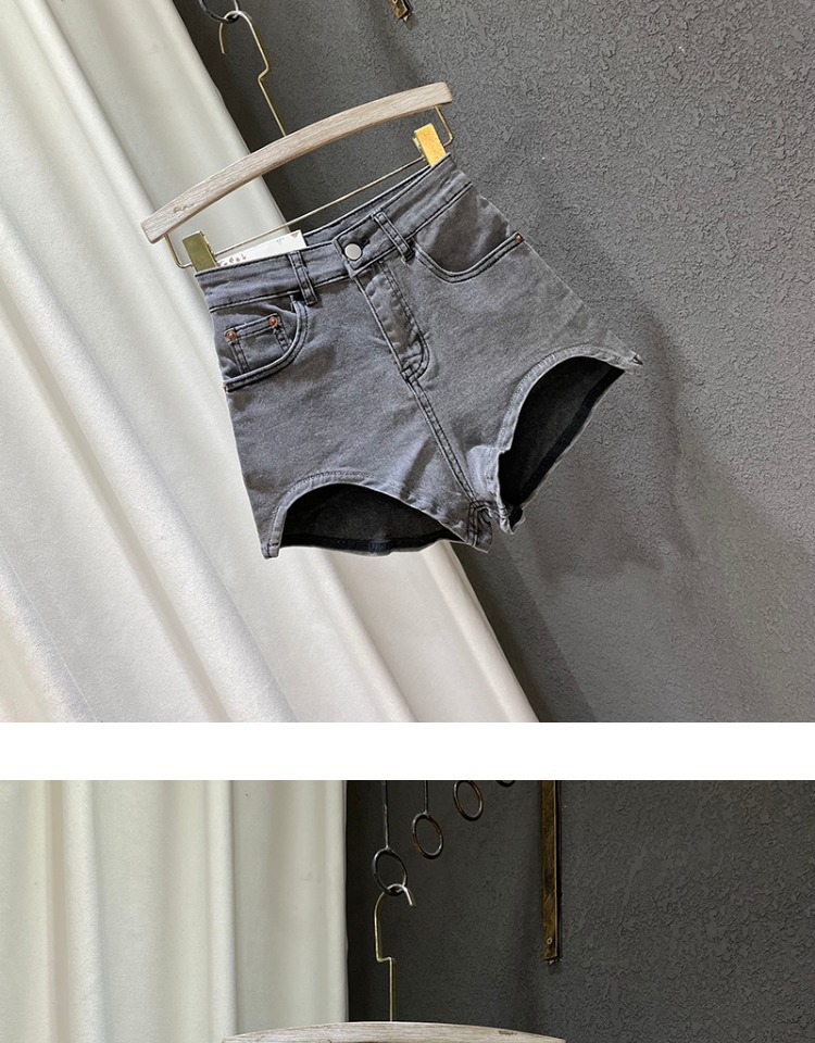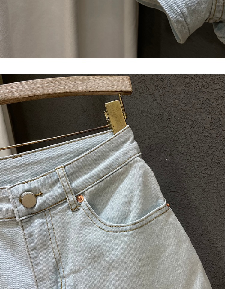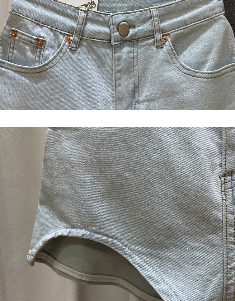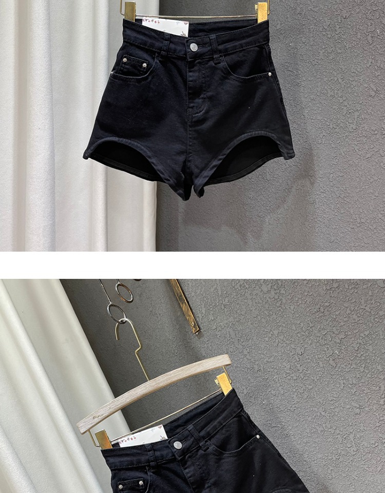 2025年夏の新作ファッション、スリムで多用途、ハイウエスト、タイトフィット、ウォッシュドストレッチワイドレッグデニムショートパンツ、女性用ホットパンツ、薄手