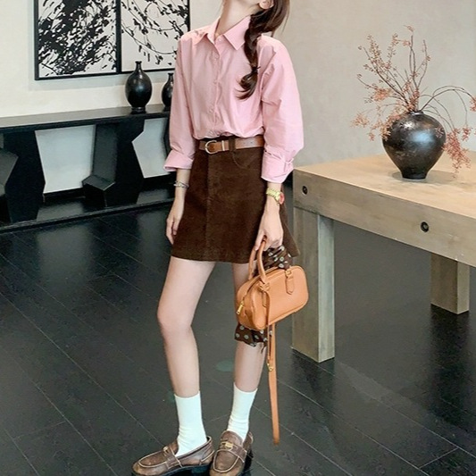 小咸韩系巨好看早秋粉色长袖衬衫女秋季宽松衬衣上衣2025新款减龄