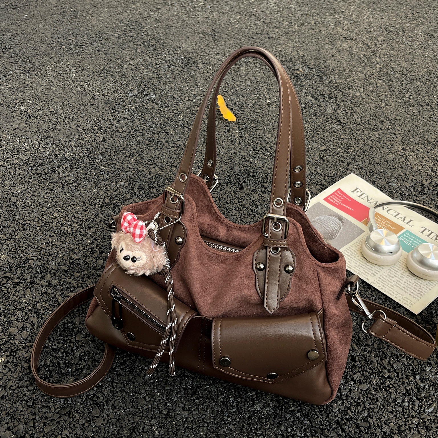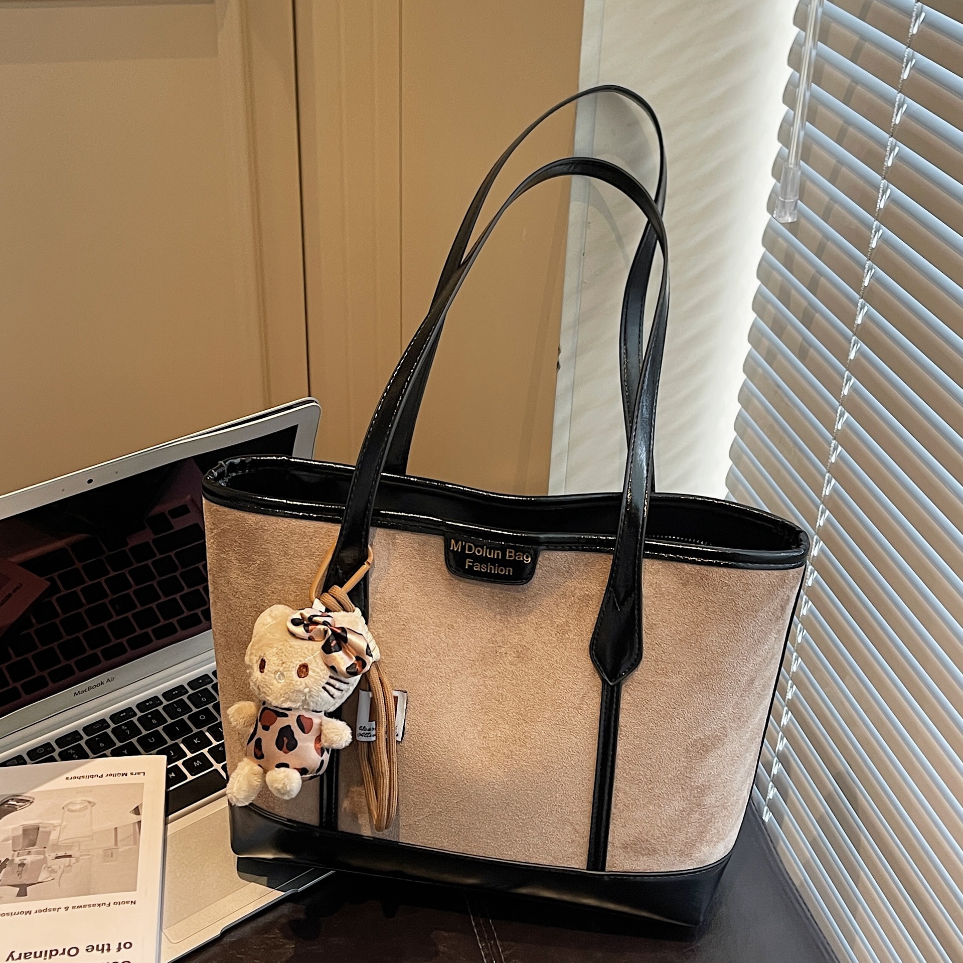 麂皮绒塞纳流光托特包女士复古手提包2025新款潮流通勤单肩斜挎包
