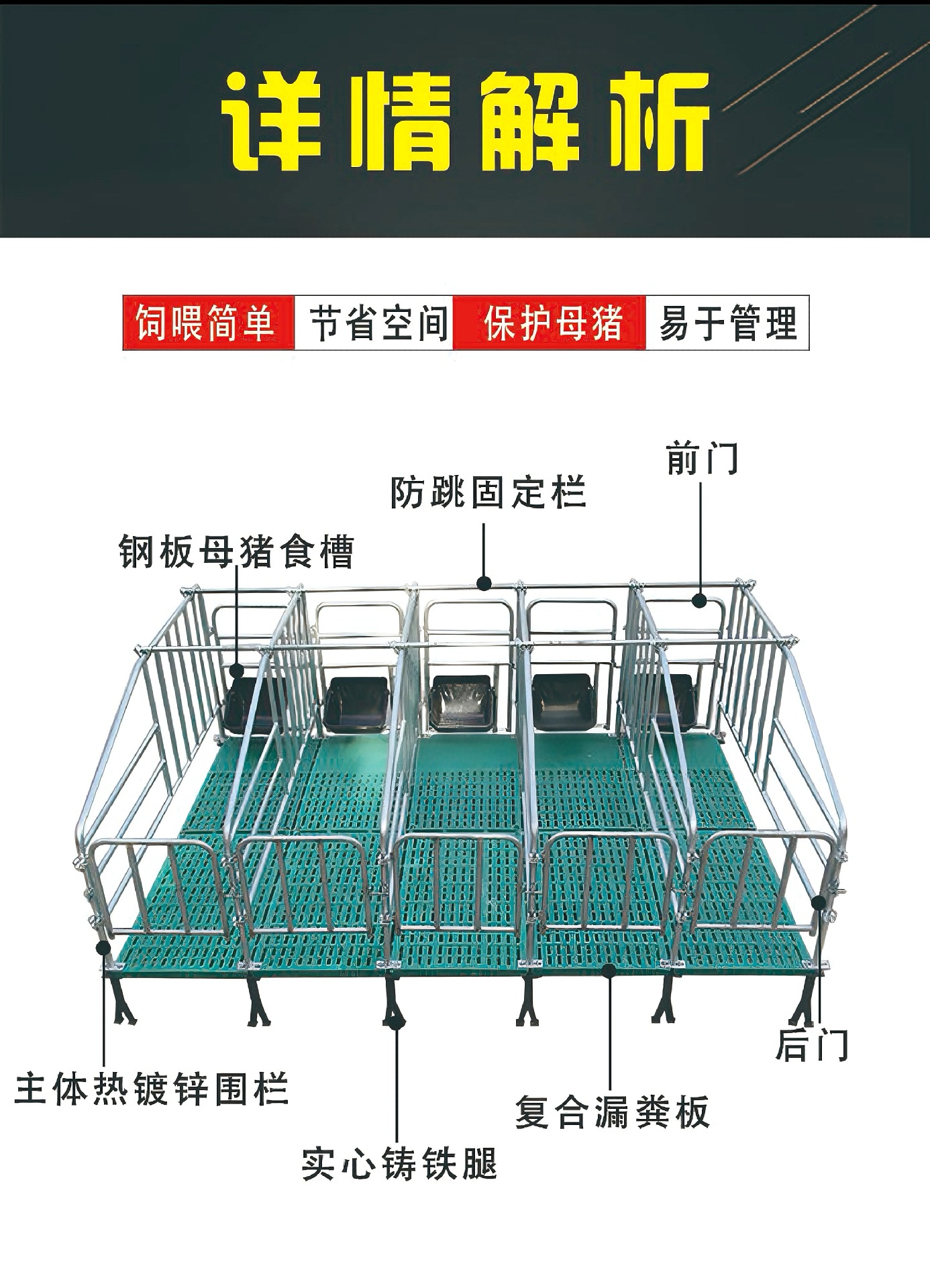 家禽、豚、羊の飼育場向けのヨーロッパ式分娩台、強力な耐荷重性、温め可能な設計、糞尿漏れプレート付き