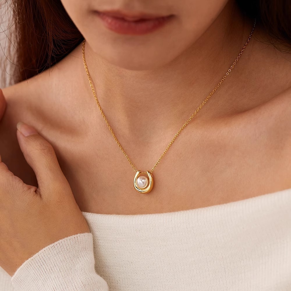 2025欧美跨境新款时尚气质轻奢高级感爆款马蹄U形珍珠项坠女项链