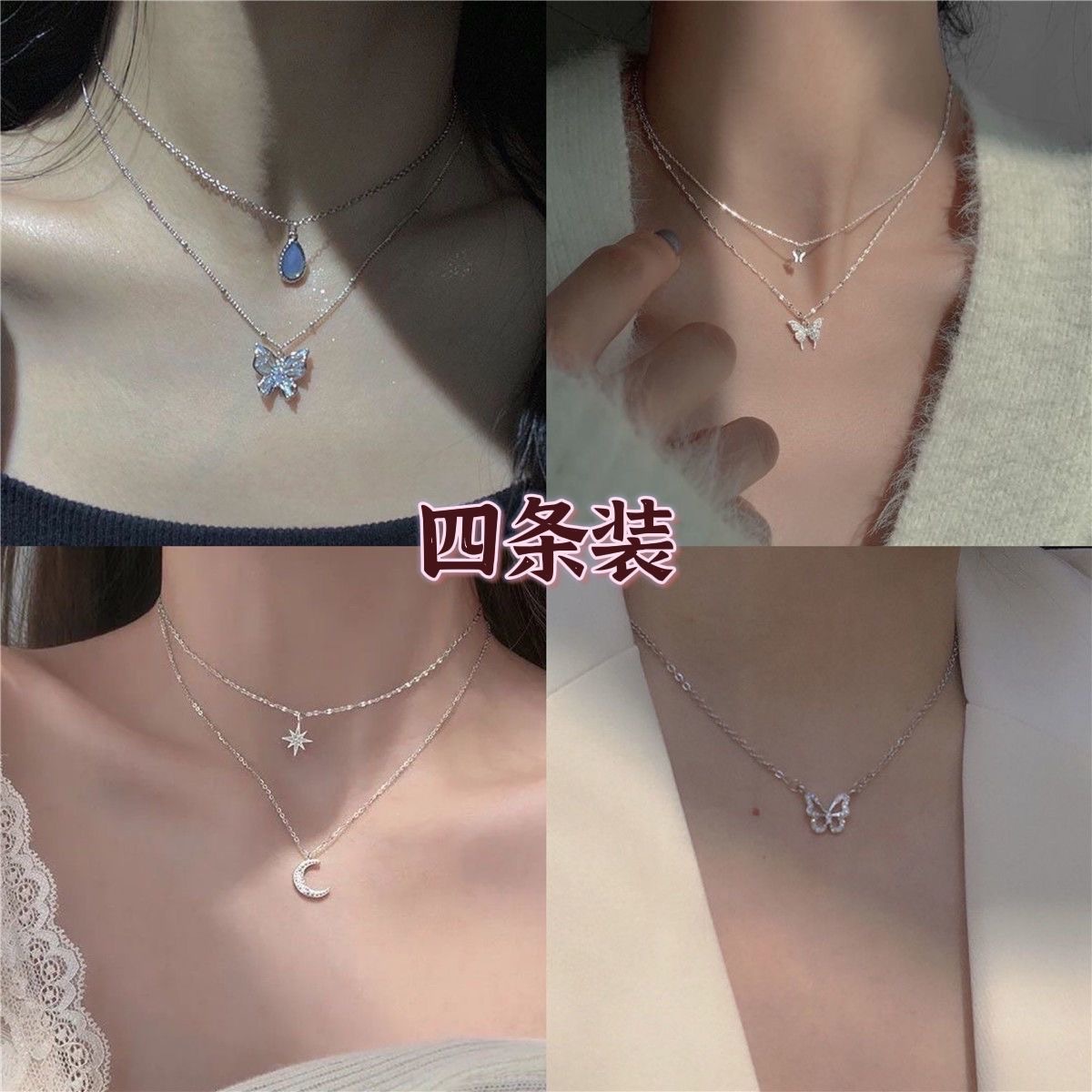 超アンドロメダ ~ 水晶の蝶のネックレスの女性のシンプルな組み合わせの小さい大衆のデザイン感のchoker潮の首の鎖の鎖の女性