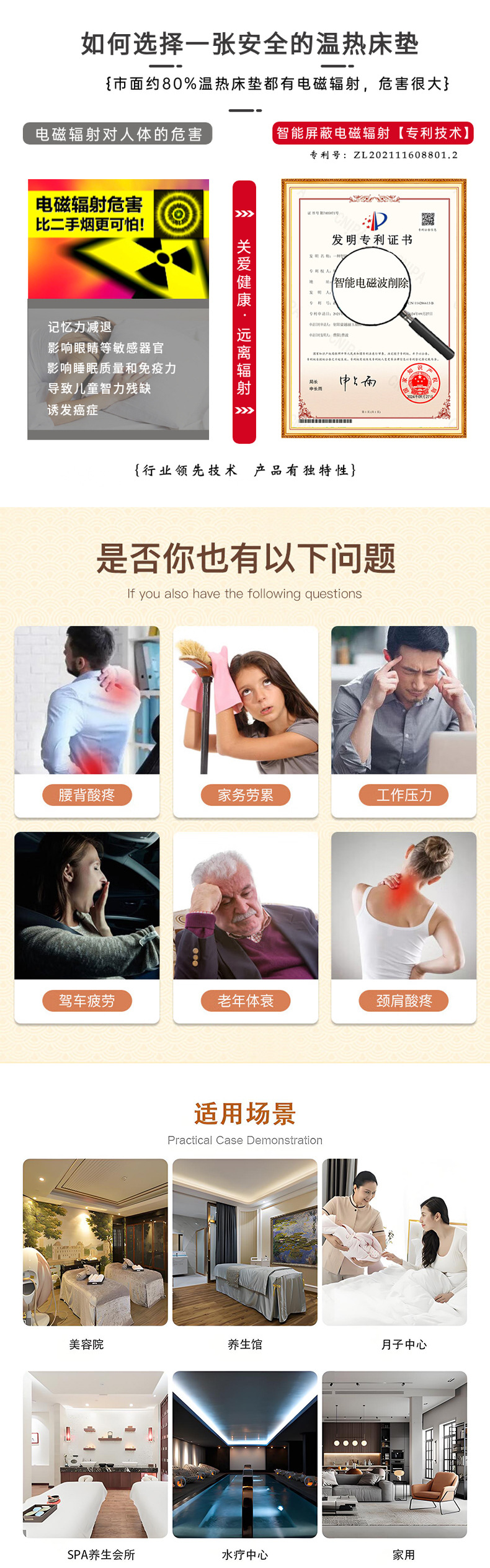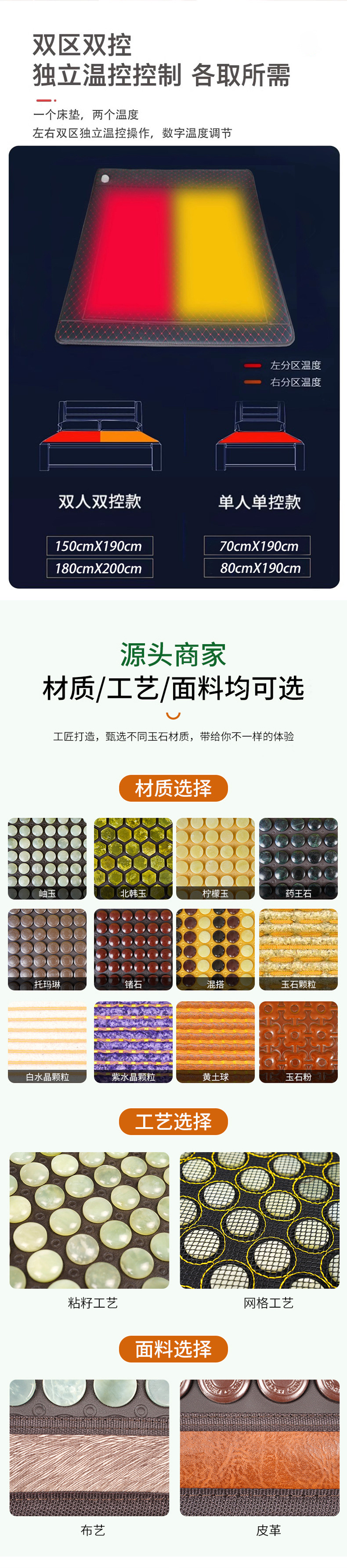 排湿排寒玉石床垫砭石加热磁疗光子理疗远红外线托玛琳超长波床垫