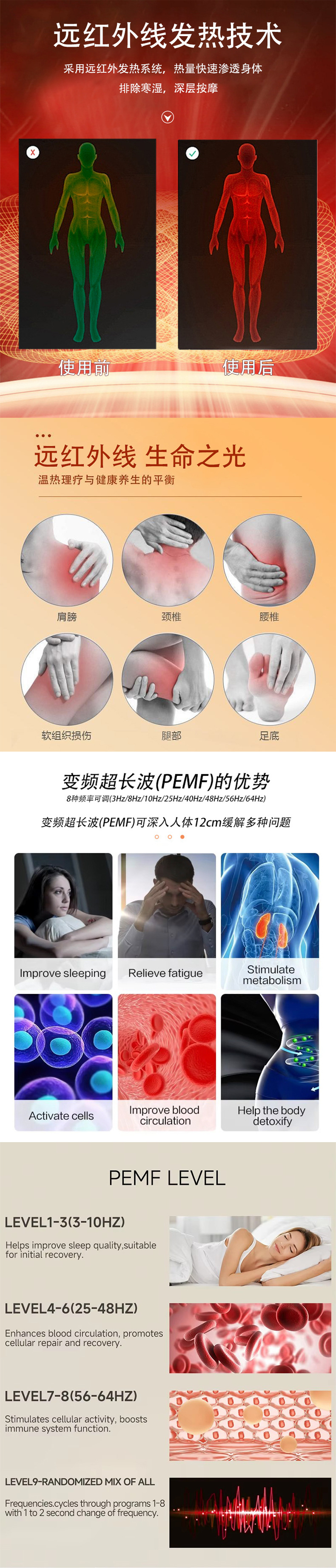 光子能量床垫远红外线理疗床垫加热托玛琳发热垫美容床超长波磁疗